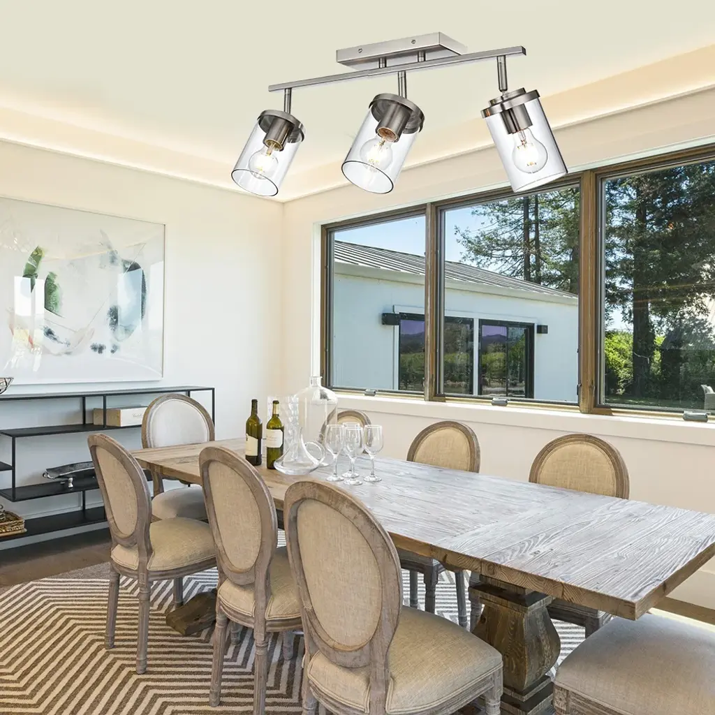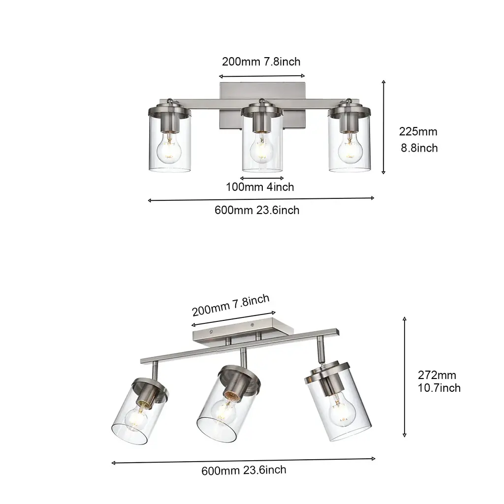 Featuring a metal frame and clear glass, this track light's modern, minimalist design is Suitable for enhancing your home decor, clear glass shade protects the bulb while enhancing the warm, soft lighting experience. Versatile Option Adjustable track heads and a rectangle canopy allow you to use this light fixture in a variety of different ways - use it on your ceiling as a traditional ceiling light or track light, or use it on your wall as a trendy vanity light. Easy Installation All mounting hardware required for installation and illustrated instructions are included in the package. Can be installed as ceiling lighting or vanity lighting. Bulb Requirements Use E26 base light bulbs, 60W Max. (not included). Fully dimmable when used with a dimmable bulb and compatible dimmer switch (not included). NOTE Please make sure you have cut off the electricity supply before installation. For the longer service life, Please use it in dry environment.