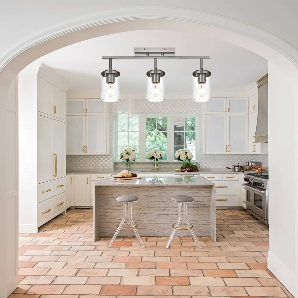 Track Lighting Ceiling With Clear Lampshape - 3-Light - Brushed Nickel