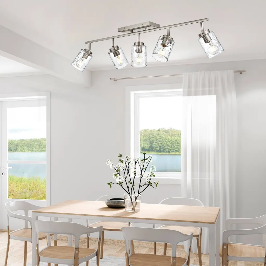 Track Lighting Ceiling With Water Ripple Glass - 5-Light