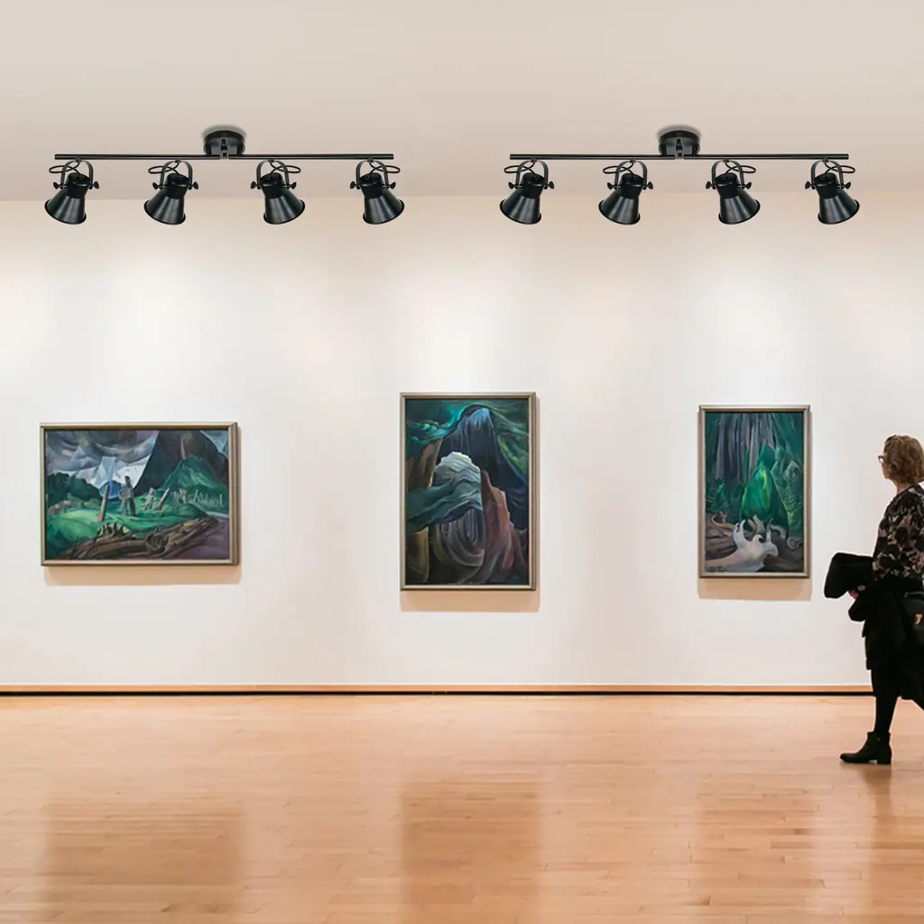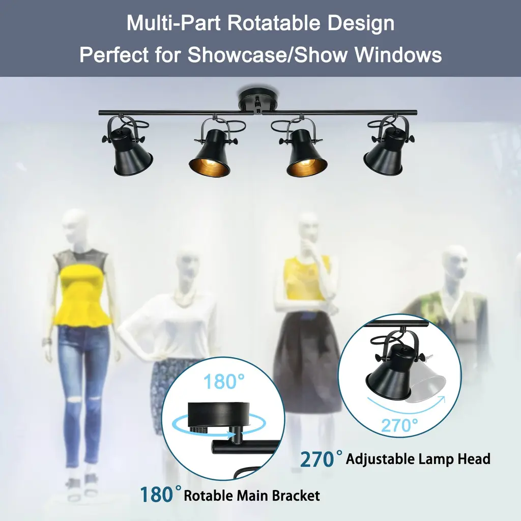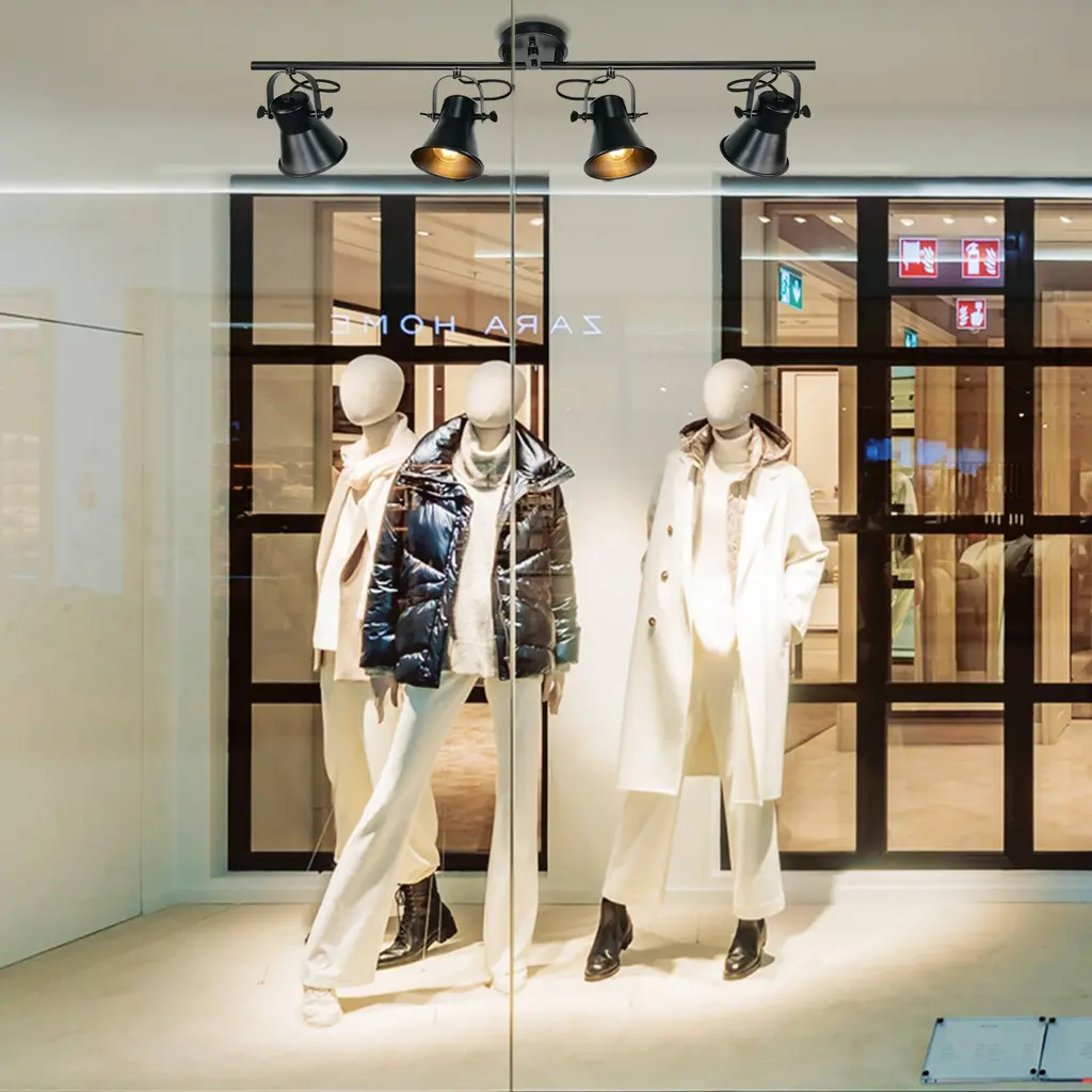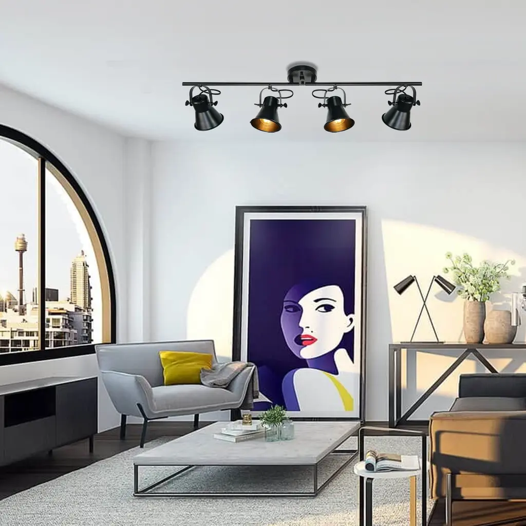 This ceiling track lighting is a great choice for your home décor. The pool table lights are accented with 4 black flared shades that envelop the light below, creating a warm and pleasant atmosphere. The horn shape of this pool table light is classic and retro, with an adjustable head design, the angle of the kitchen track lighting can be adjusted at will to illuminate any corner. Moreover, there is no restriction on the installation angle of this black track lighting fixture, whether it is a flat ceiling or a sloping ceiling, it can be installed and used. The unique appearance design makes it versatile, this modern track light fixture can be used in cafes, bars, photo walls, kitchens, dining rooms, corridors, office areas, and more.Feature