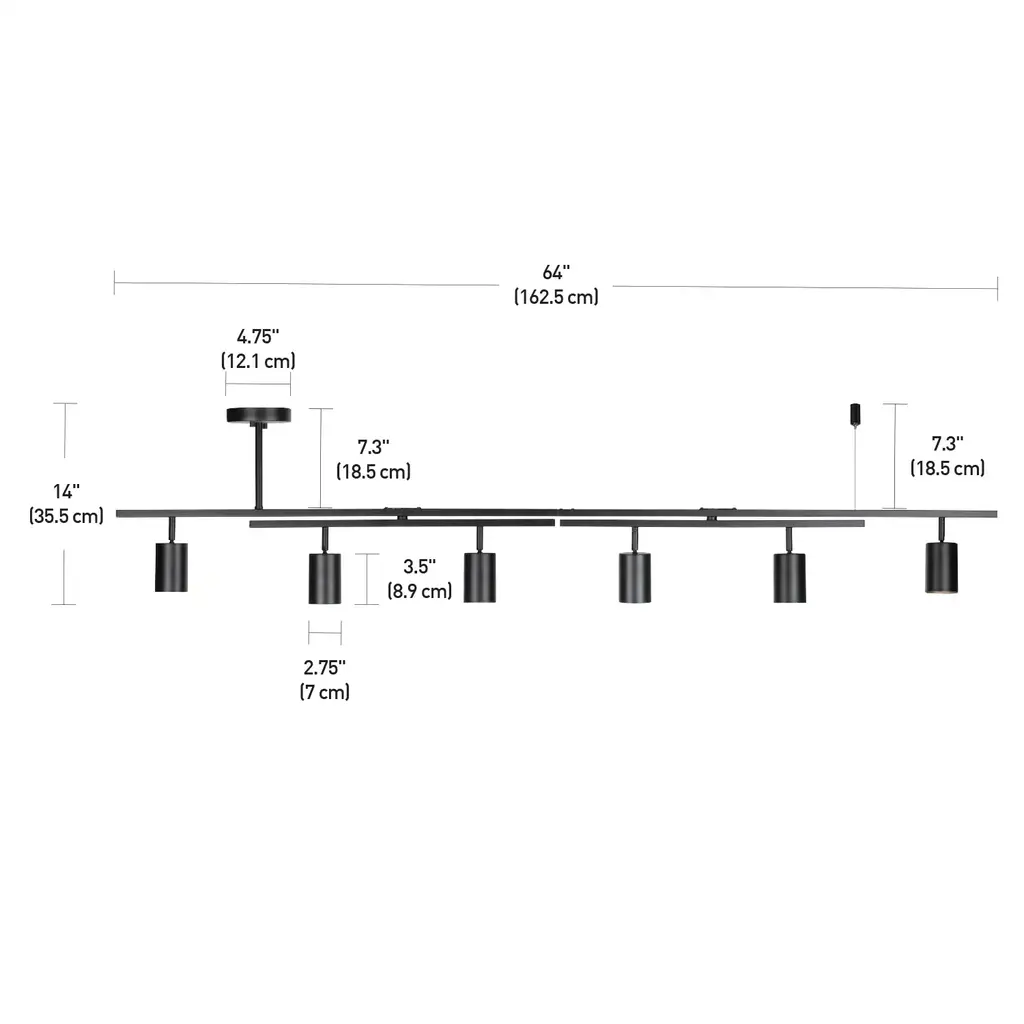 West 64" Matte Black 6-Light Track Lighting With 2X Center Swivel Bars - 64" - Black