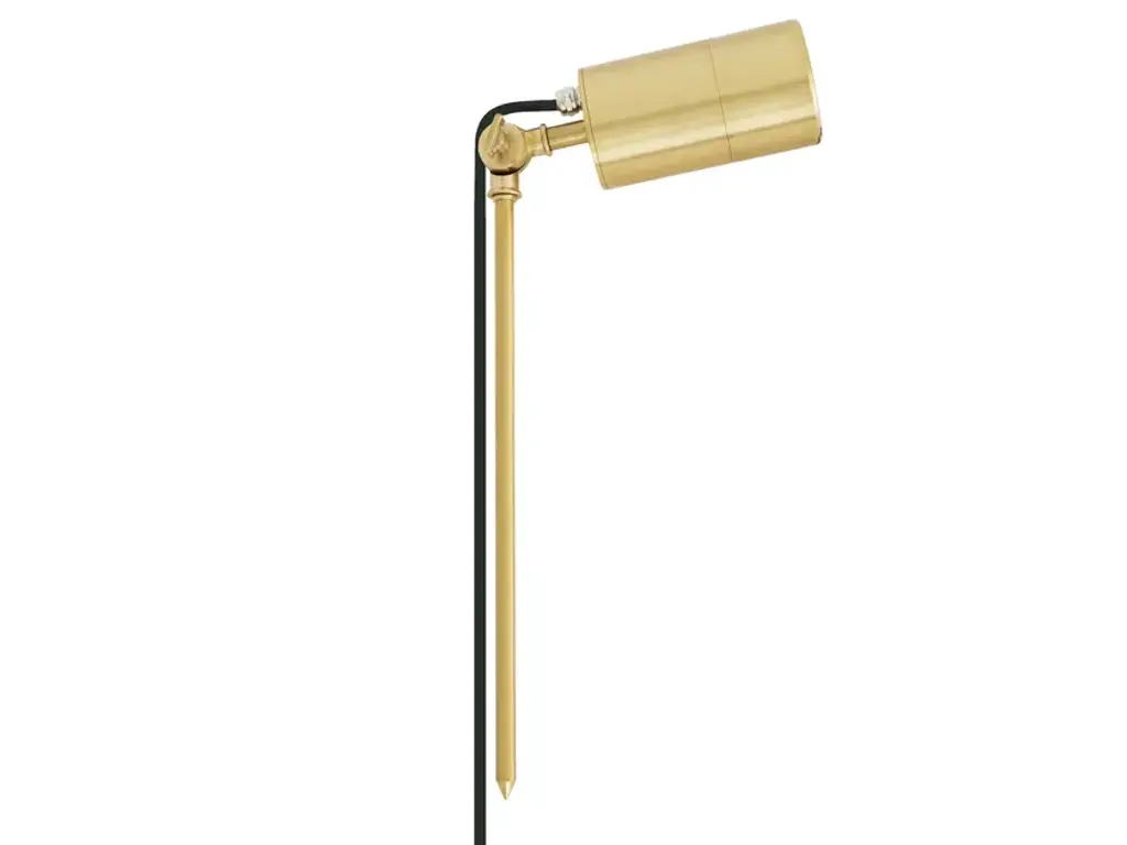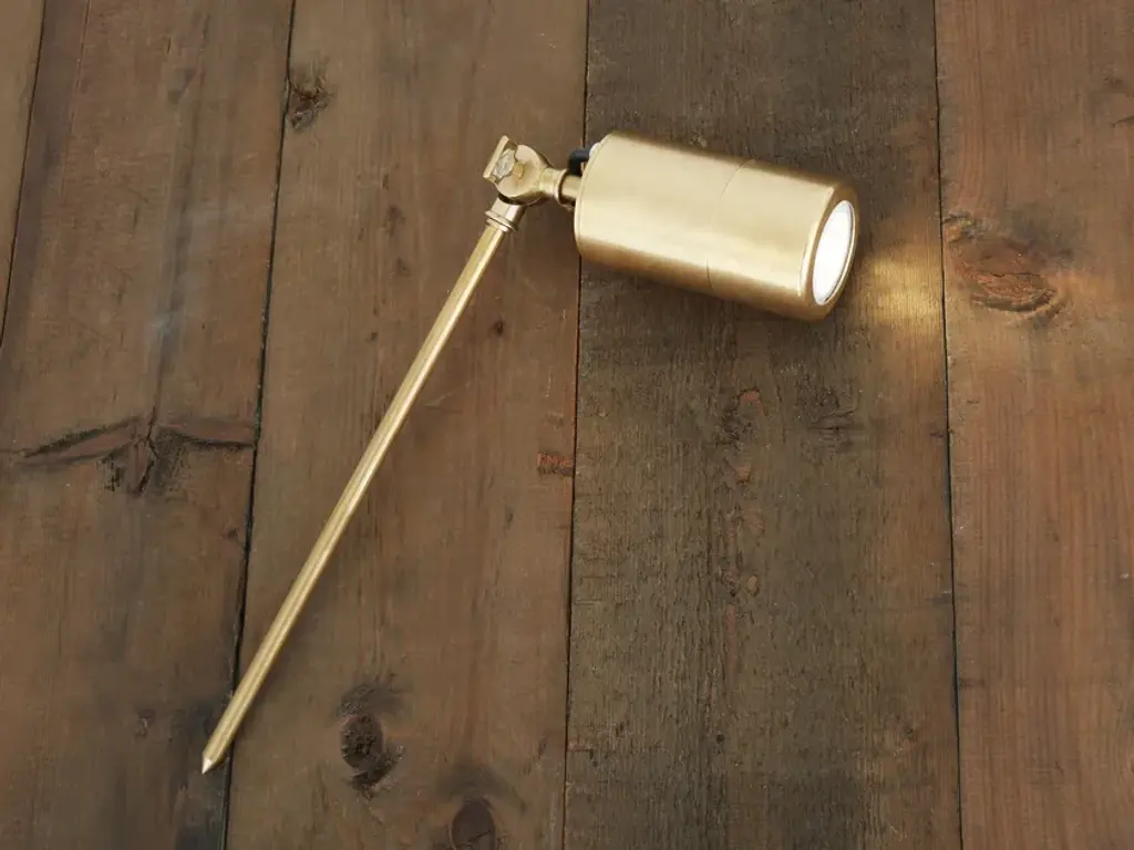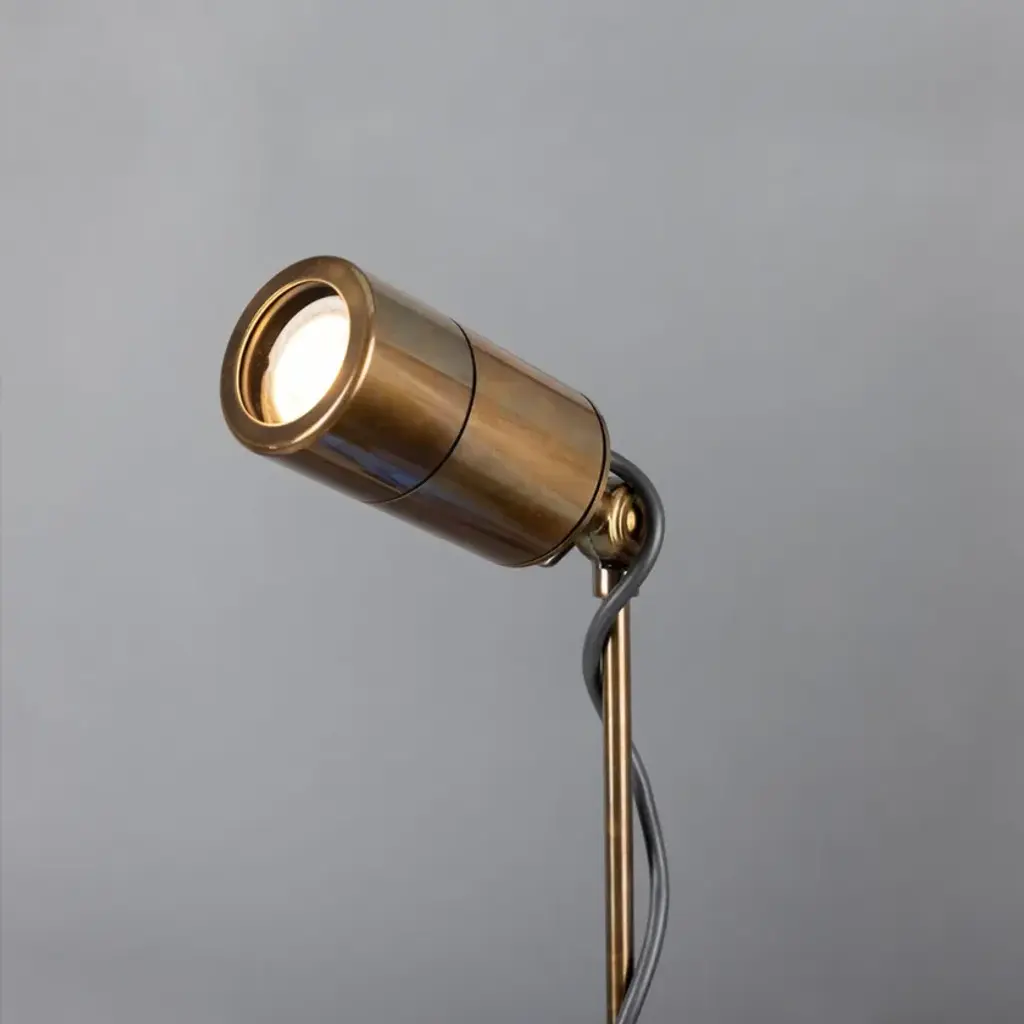 Yara brass outdoor spot light Material BrassProjection 17cm | 6.75”Flex/Chain Length 200cm | 80”Weight 1kgMax Wattage 6.5w LEDVoltage 220/240vLampholder GU10IP Rating IP65