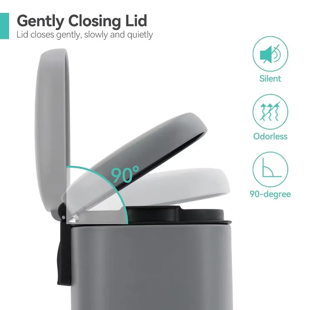 1.3 Gallon Small Bathroom Trash Can, Stainless Steel Garbage Can With Soft Close Lid & Removable Inner Bucket, Slim For Small Spaces, Kitchens, Grey