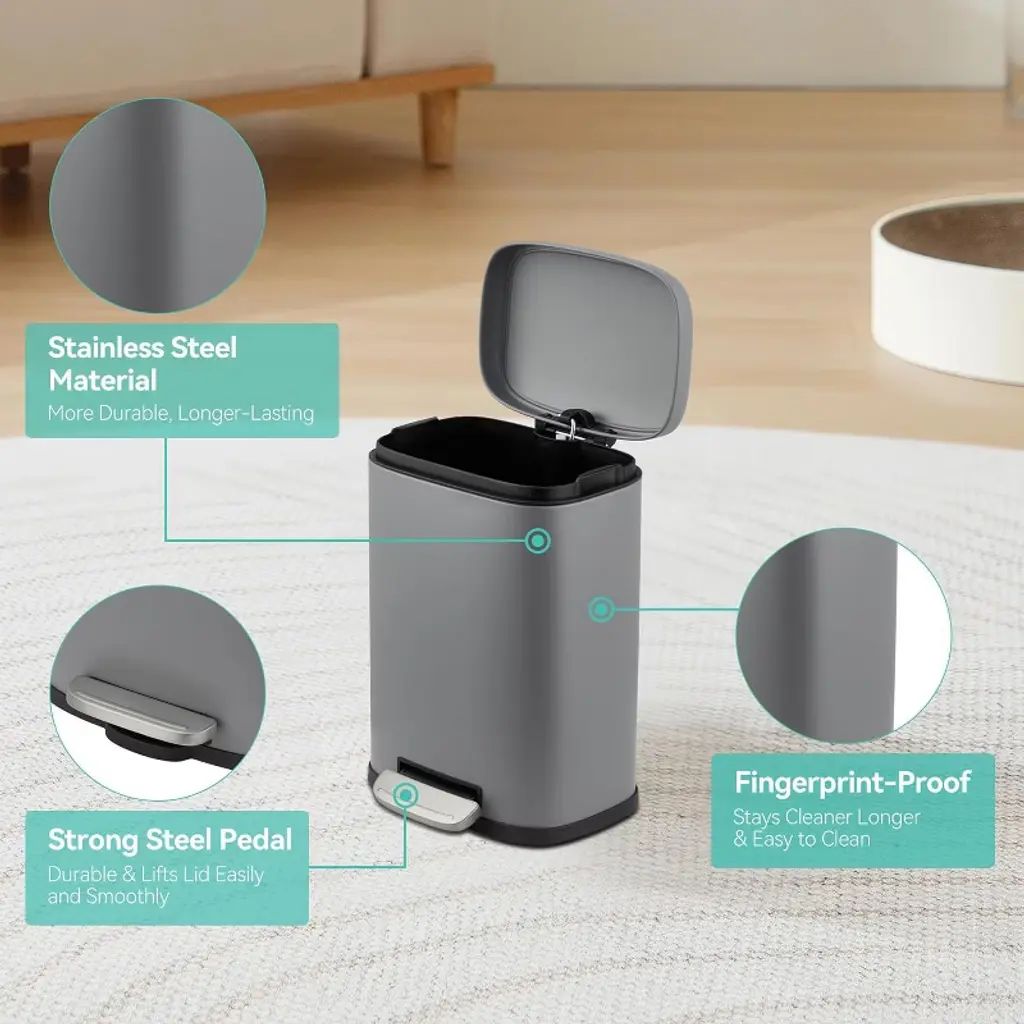 Ever wish your bathroom or vanity area could stay effortlessly tidy without a bulky trash bin in the way? This slim 1.3 gallon stainless steel trash can is thoughtfully designed to fit right next to your toilet or under the sink, making it perfect for tossing out makeup wipes, tissues, and other small daily waste. The soft close lid keeps things peaceful and helps lock in odors, while the removable inner bucket makes emptying trash quick and easy. With a durable steel pedal for hands-free use and a sleek metal finish that blends with any décor, could this be the simple upgrade your bathroom routine needs?