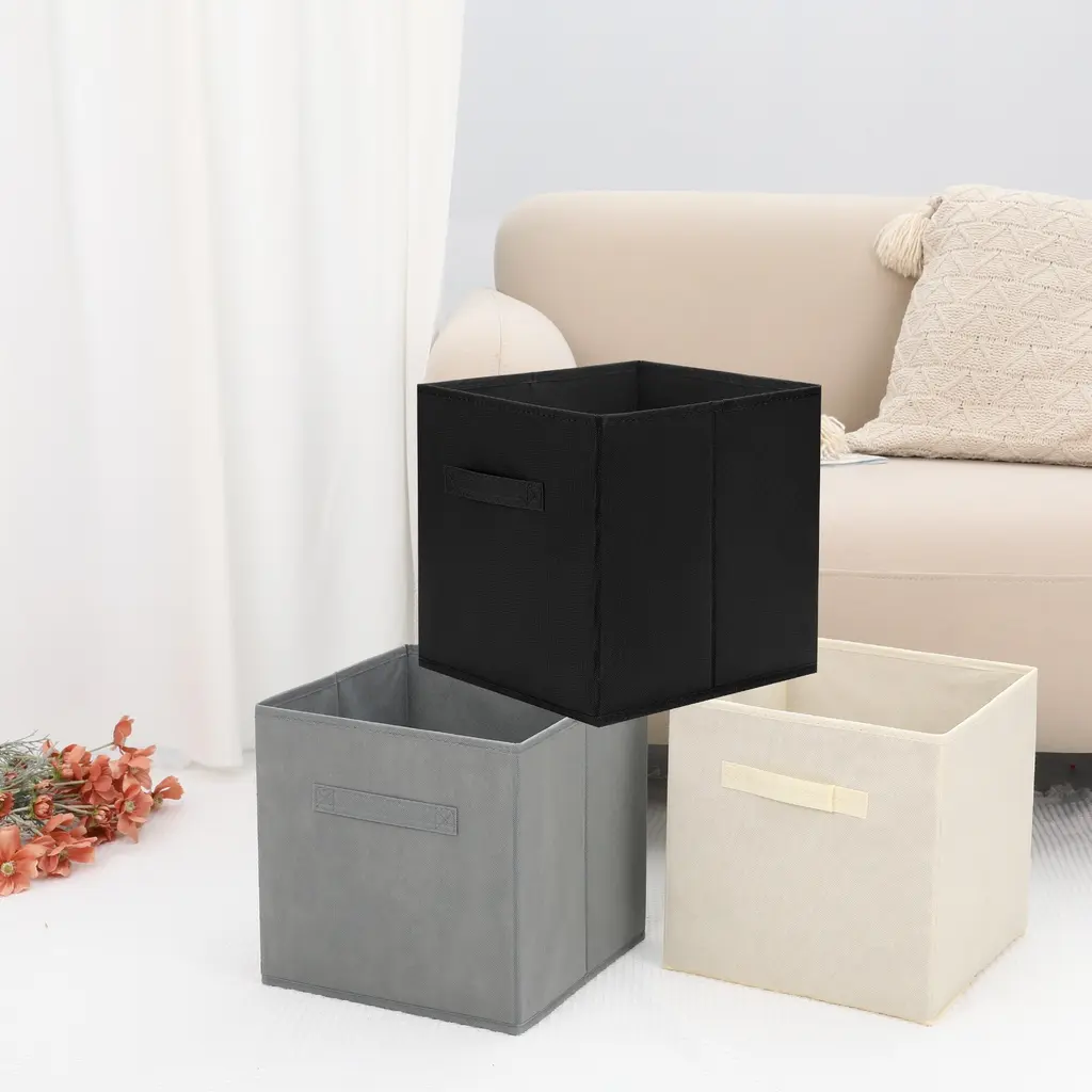 Premium Material: The cube storage organizer is made from good quality fabric and reinforced with a sturdy MDF bottom board. The solid construction enables the shelf storage bins to stand upright without support, even when emptyCollapsible Design: The storage box can be folded flat when not in use to save space or transport. The large blanket basket for organizing various items, including clothing, towels, blankets, pet supplies, books, magazines, albums, DVDs, office and craft supplies, etcSpacious Capacity: Our organization bin enables you to store a wide variety of items to keep your home tidy and organizedEasy To Care: The large cube organizer is sturdy and has no odor and they are not machine washable. Lined with a thin linen fabric, linen closet organizer and storage is easy to clean, just wipe it with a damp sponge or clothVersatile Use Cubby Bin: Use the collapsible storage bin in the room, playroom, laundry area, closet, storage room, etc. Sit cube organizer bin on the floor, in the closet, bookcase, desk, shelving area, cubbies, and collage dorm room, classroom decor and towel organizerOur baskets provide attractive, lightweight solutions for all your storage and organization needs while keeping household items tidy and organized - Complete storage basket, closet organizers, nurseries, and more.These fabric storage bins are easy to carry or remove on a shelf. They could work well as drawers, open-top bins, or storage baskets for shelves.