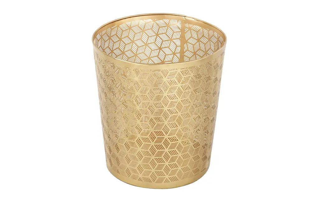 Keep your space tidy and neat with the help of this waste basket. Functional and decorative filler of bare home spaces. This item ships in 1 carton. Suitable for indoor use only. This item ships fully assembled in one piece. Made in India. This is a single gold colored office wastebasket. Glam style.