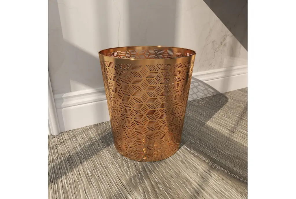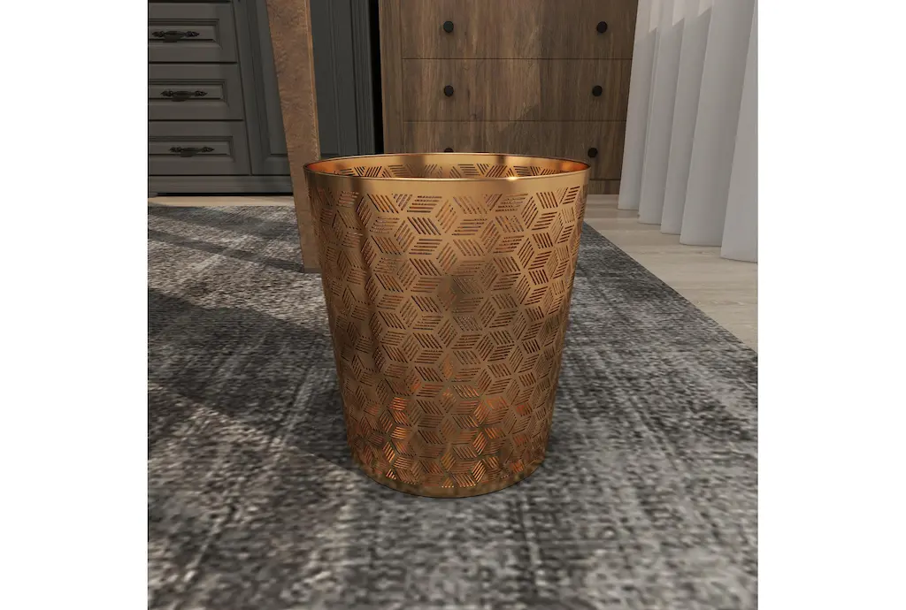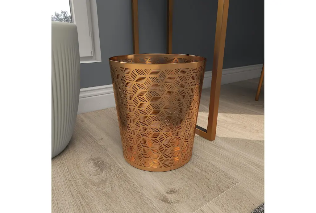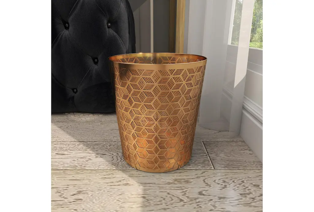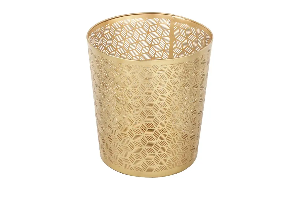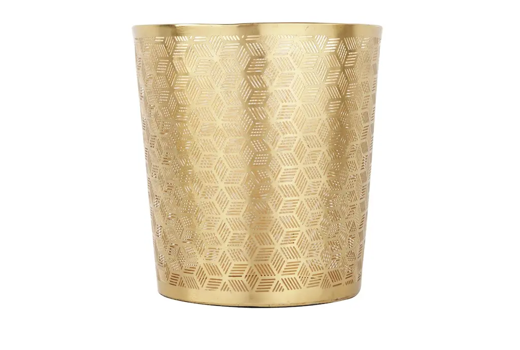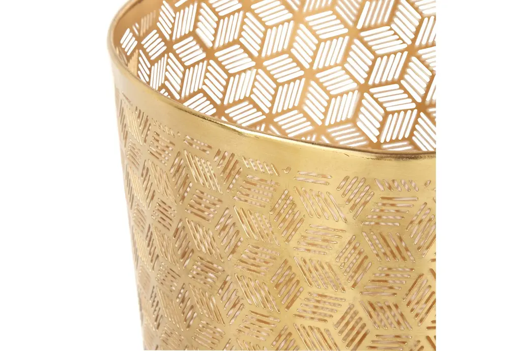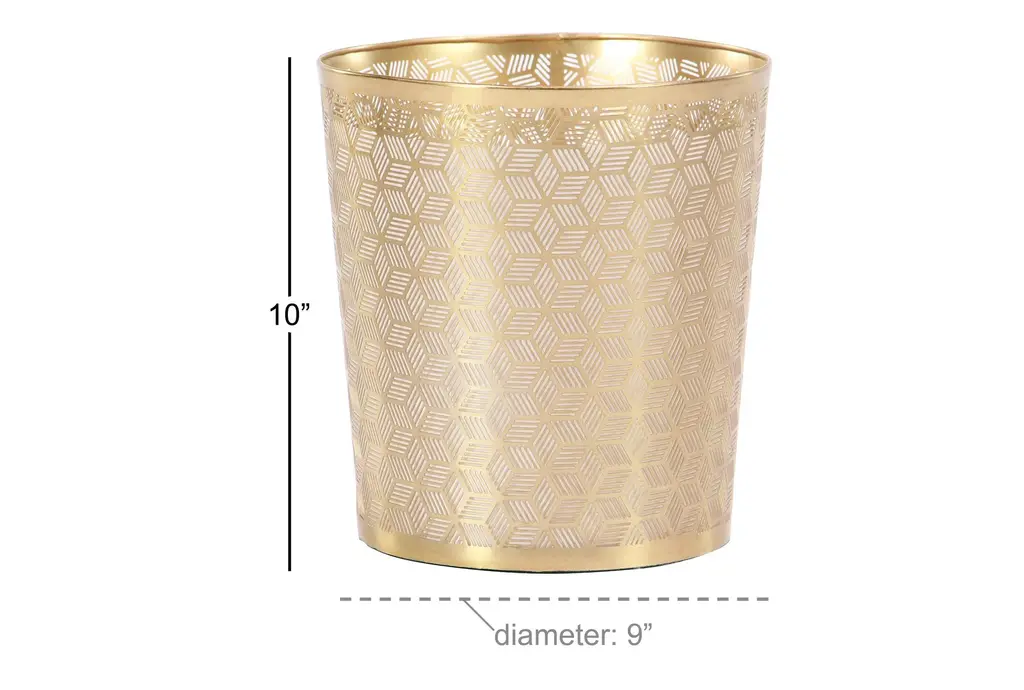 10 Inch Gold Metal Glam Geometric Small Waste Bin With Laser Carved Design By Cosmoliving