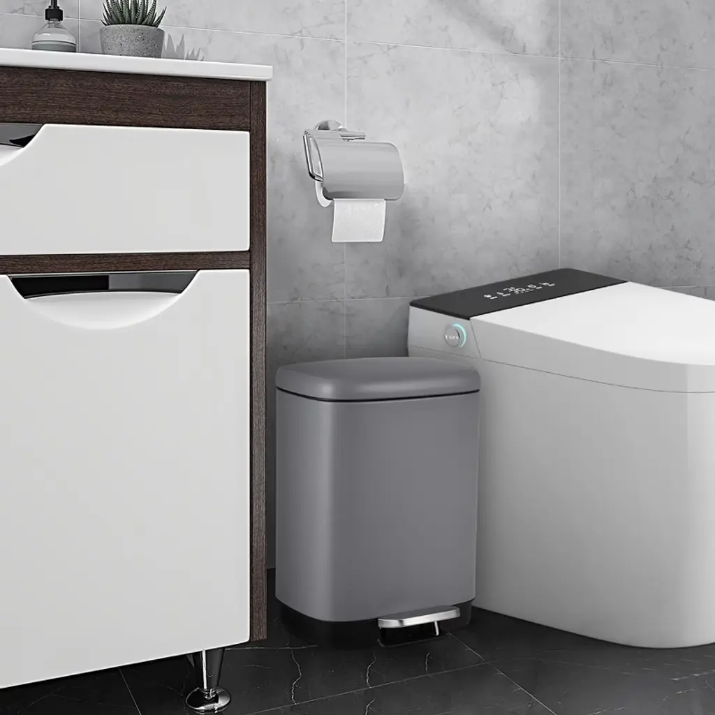 12l Bathroom Trash Can With Lid, Stainless Steel Kitchen Trash Can With Odor-protective Lid | Hands-free, With Foot Pedal And Trash Bag Ring
