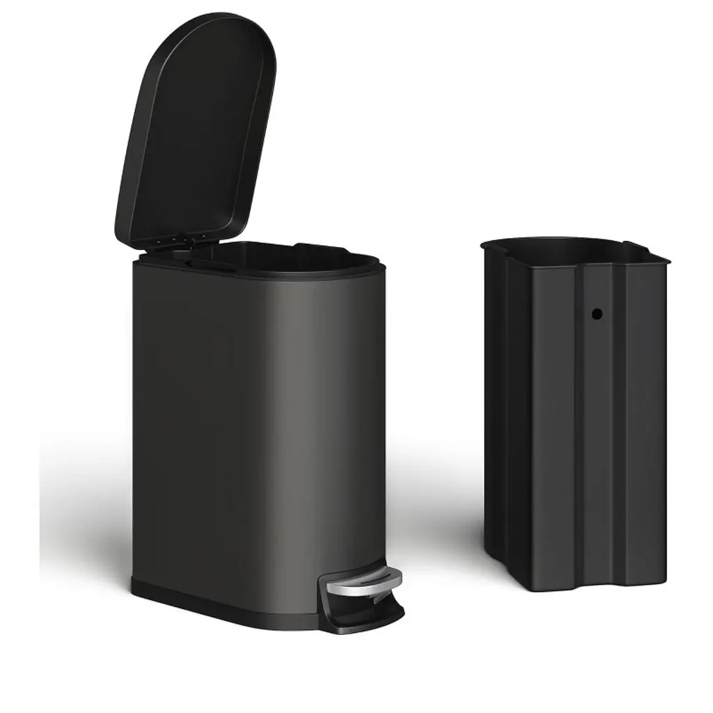 Elevate your waste management with the Garvee 13.2 Gal (50L) and 2.6 Gal (10L) Stainless Steel Trash Can Combo Set, designed for kitchens, bathrooms, and tight spaces. This sleek duo features a slim footprint that fits perfectly alongside 36"" island countertops and narrow bathroom gaps, blending functionality with modern design. The larger bin holds up to 13.2 gallons and the smaller 2.6 gallons, with removable inner buckets that maximize capacity without occupying excessive floor space. Crafted from rust-resistant 410-grade ferritic stainless steel, these bins are fingerprint-resistant and easy to clean. The thick lid, with an extended lip, hides bag edges for a neat look, while anti-slip rubber feet ensure stability on various flooring types. The soft-close lid smoothly glides open up to 80°, locking at 95° for hands-free use, supported by a durable industrial-grade pedal engineered for over 150,000 steps. An ergonomic rear handle provides easy portability, and the inner bucket lids trap odors for a fresher environment. Custom liner rings hold standard bags securely, preventing slips and bunching during use. The combo set adapts seamlessly to multiple home areas—the smaller bin fits compact spots like between toilets and sinks, while the larger bin is ideal for kitchen islands, laundry rooms, and home offices. Sleek, Space-Saving Design: Compact dimensions align with standard kitchen islands and narrow bathroom spaces for a cohesive look. Spacious Inner Buckets: 13.2 Gal bucket holds up to 32 water bottles (16.9 oz); 2.6 Gal bucket fits up to 6 bottles, maximizing capacity efficiently. Durable & Fingerprint-Resistant: Built with rustproof 410-grade stainless steel, fingerprint-resistant finish, and scratch-resistant polypropylene buckets. Convenient & Practical Features: Soft-close lid with extended lip conceals bag edges; ergonomic rear handle for portability; anti-slip rubber feet for stability. Heavy-Duty Pedal & Hinge: Industrial steel pedal endures 150,000+ steps; ABS hinge rated for 300,000+ open/close cycles. Versatile Placement: Smaller bin perfect for bathrooms and tight spaces; larger bin ideal for kitchens, laundry rooms, and offices. Secure Packaging & Warranty: Ships in reinforced packaging with foam inserts and corner guards. Covered by a 1-year warranty with responsive customer support. Specifications: Large Bin Dimensions (L×W×H): 16.73"" × 14.65"" × 25.98"" (closed), 35.43"" (lid open) Small Bin Dimensions (L×W×H): 12.6"" × 7.32"" × 15.28"" (closed), 25.59"" (lid open) Capacity: 13.2 Gal (50L) + 2.6 Gal (10L) Materials: 410-grade ferritic stainless steel, polypropylene inner buckets, ABS lid Pedal Durability: 150,000+ steps Hinge Durability: 300,000+ open/close cycles Package Includes: 1 × 13.2 Gallon Stainless Steel Trash Can with Inner Bucket 1 × 2.6 Gallon Stainless Steel Trash Can with Inner Bucket Customer Support: 1-year warranty covering shipping damage, parts failure, and functional defects with prompt customer service assistance