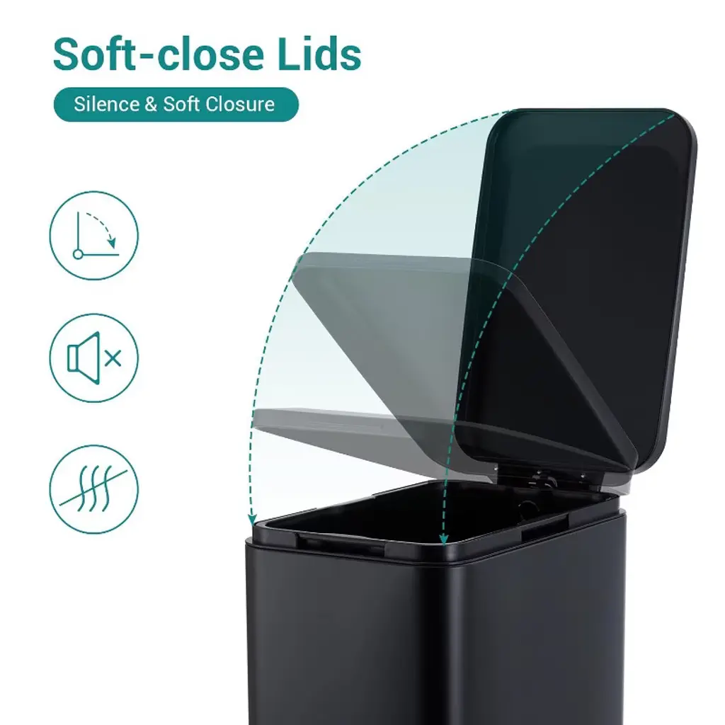 Spacious Capacity for Daily Use: Measuring 11.3'' x 20.8'' x 26.5'', the 13.2-gallon slim kitchen trash can offers ample capacity for busy households while occupying minimal floor space and fitting snugly into narrow areas Stainless Steel Construction: Crafted from premium stainless steel, this rubbish bin offers remarkable longevity and wear protection with a fingerprint-proof surface keeping it looking clean and polished, making maintenance easy Quiet and Smooth Operation: Featuring advanced slow-down technology, this step trash can opens and closes quietly, preventing loud clangs when disposing of waste and helping you maintain a peaceful atmosphere in your kitchen or bathroom Hands-Free Convenience: The step foot pedal of the rubbish bin allows for hands-free operation, providing effortless and hygienic waste disposal by enabling you to open the lid with your foot while your hands are occupied Effortless Cleaning with Inner Bucket: Equipped with a removable inner bucket, this kitchen trash bin simplifies disposal and cleaning; just lift out the wastebasket for quick emptying, keeping your kitchen tidy and efficient with minimal effort