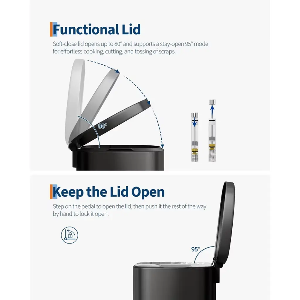13.2 Gallon Step Trash Can With Soft-close Lid, Stainless Steel Garbage Can With Removable Inner Bucket