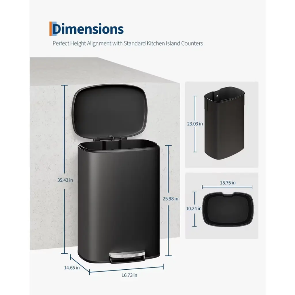 13.2 Gallon Step Trash Can with Soft-Close Lid, Stainless Steel Garbage Can with Removable Inner Bucket, 50 Liter Recycling Bin Waste Container for Kitchen, Bathroom, Living Room