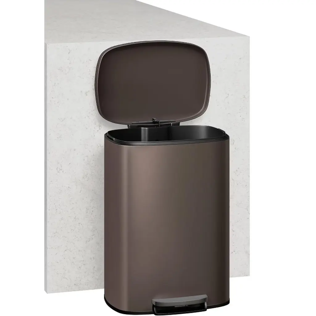Upgrade your space with this sleek 13.2 gallon stainless steel step trash can—hands-free, odor-sealing, and easy to clean for effortless waste management every day! Highlights at a Glance: - 13.2 gallon stainless steel kitchen trash can - Soft-close trash can with odor-sealing lid - Step-on garbage bin for hands-free use - Removable inner bucket for easy cleaning - Sleek waste container for kitchen or bathroom Specification: Material: Stainless Steel+Plastic Dimension: 16.73x14.65x25.98 inch Capacity: 50L/13.21 Gallon Packing List: 1xKitchen Trash Can 1xInstruction Manual 1xInner Bucket Note: Always use the kitchen trash can on a flat, stable surface to ensure proper foot pedal function and lid closure. Do not force the lid open or closed; allow the soft-close mechanism to work naturally for prolonged lifespan. Clean the stainless steel exterior with a soft, damp cloth and avoid abrasive cleaners to prevent scratches. Remove and wash the inner bucket regularly to maintain hygiene and prevent odors.