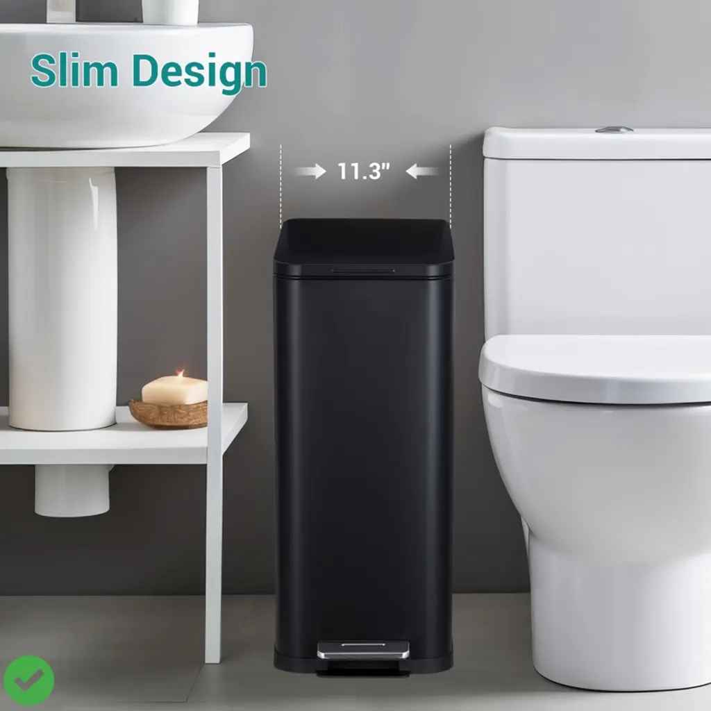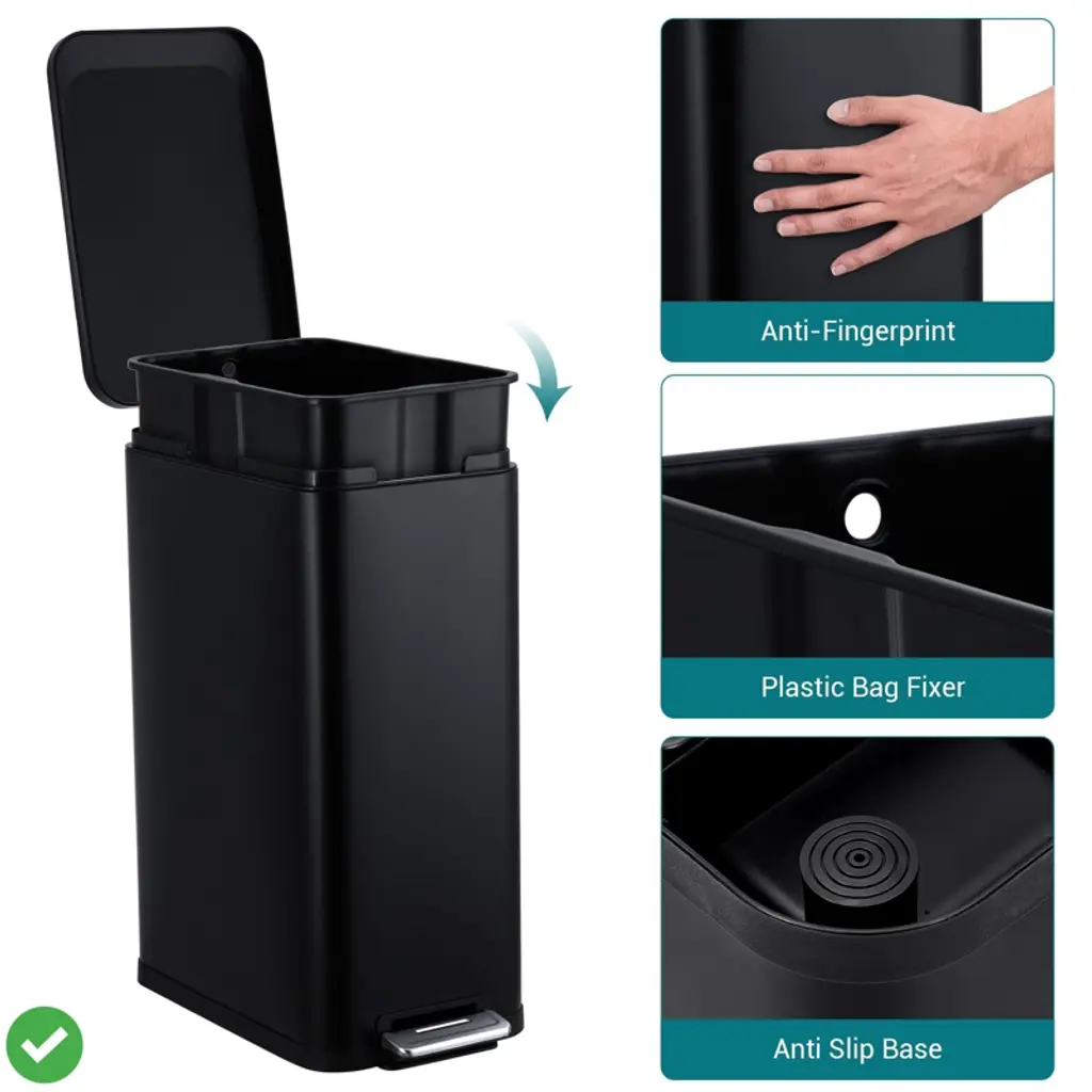 13 Gallon / 50l Slim Trash Can Stainless Steel Kitchen Trash Can Fingerprint-proof Step Garbage Rubbish Bin