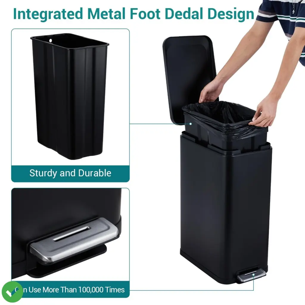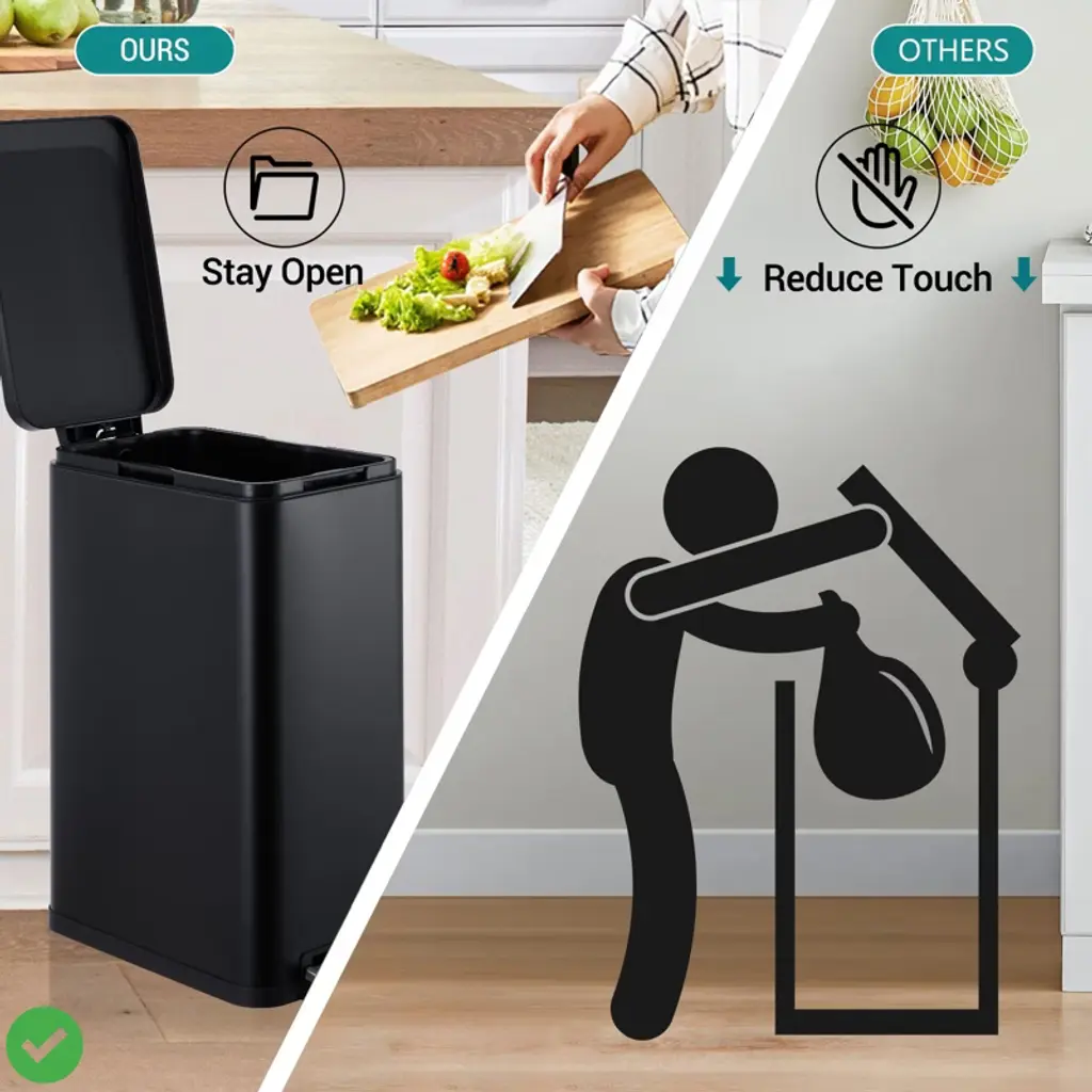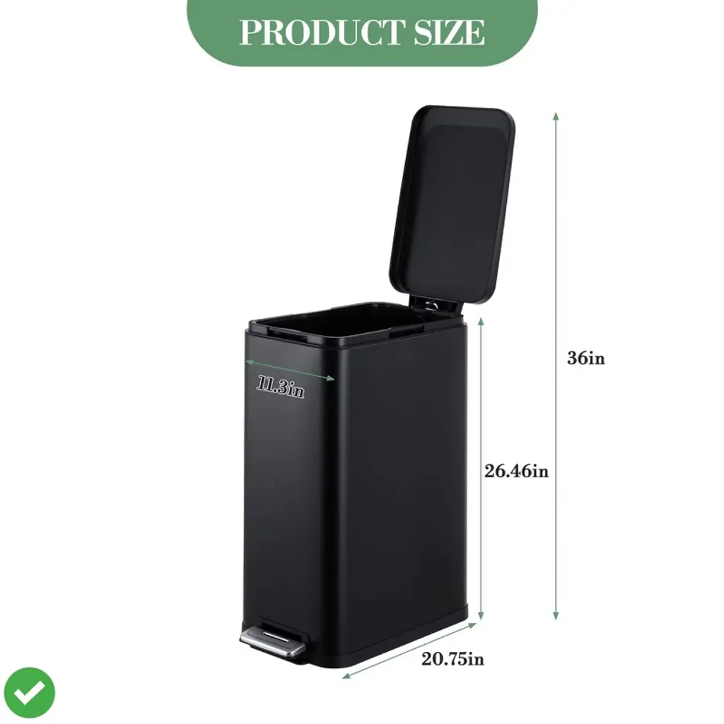 Specification: The kitchen waste bin measures 11.3" L x 20.8'' W x 26.5" H and offers a large capacity of 13.2 gallons/50 litres to hold a large amount of kitchen waste, perfect for busy families who need to store a large amount of waste without compromising floor space.