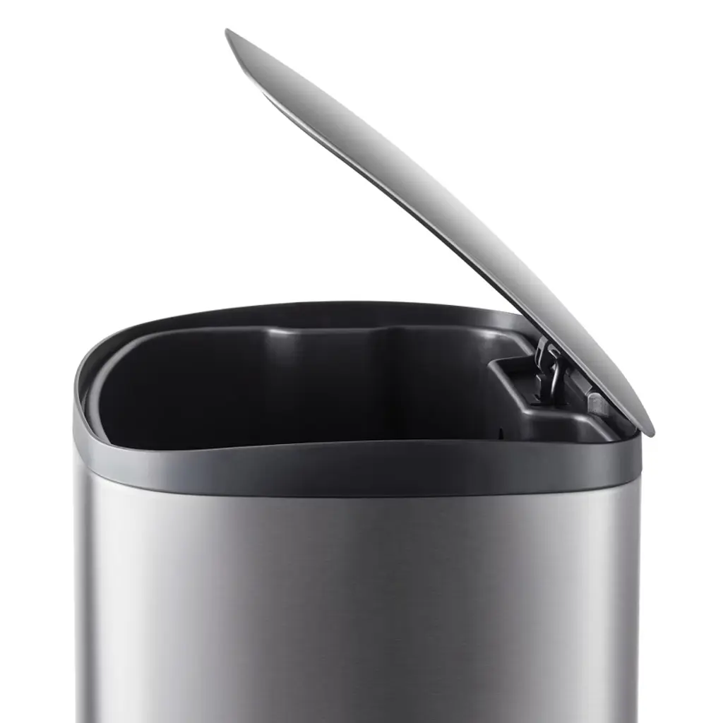 Product DescriptionUpgrade your waste management with this sleek 13 gallon stainless steel trash can. Designed for style and convenience, it features a quiet soft-close lid and a hands-free step pedal for hygienic access. The removable inner bucket makes emptying and cleaning effortless—perfect for busy kitchens, offices, or bathrooms.Product Feature Modern stainless steel finish complements any décorSpacious 13 gallon (50L) capacityQuiet soft-close lid for noise-free useHands-free step pedal operationRemovable inner bucket for easy cleaningProduct informationColor: silverMaterial: Stainless Steel + PlasticSize: 19.09"L x 15.94"W x 25.98"HItem Weight: 18.06pounds Capacity: 13 gallons / 50 litersPacking List:1x Stainless steel trash can1x ManualFriendly note:Ensure the trash can is placed on a flat, stable surface for optimal functionality and safety.When using the foot pedals, apply gentle pressure to maintain the soft close feature and prevent wear.For best results, use trash bags that fit snugly within the compartments to avoid spills and ensure cleanliness.Regularly clean the stainless steel surface with a soft cloth to maintain its quality and sleek appearance.Avoid overfilling the trash can.
