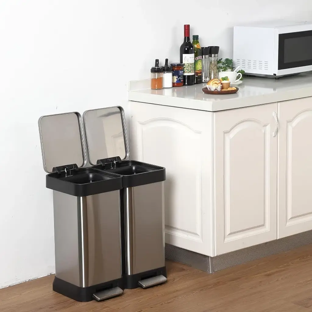 13 Gallon Step-open Dual Trash And Recycling Bin With Soft-close Lid, Modern, Minimalistic For Home, Kitchen, Laundry Room