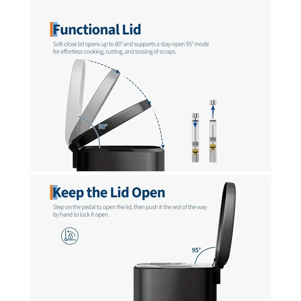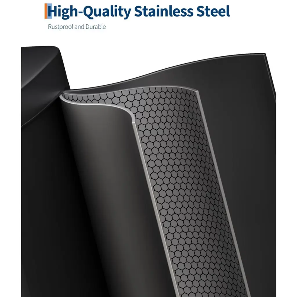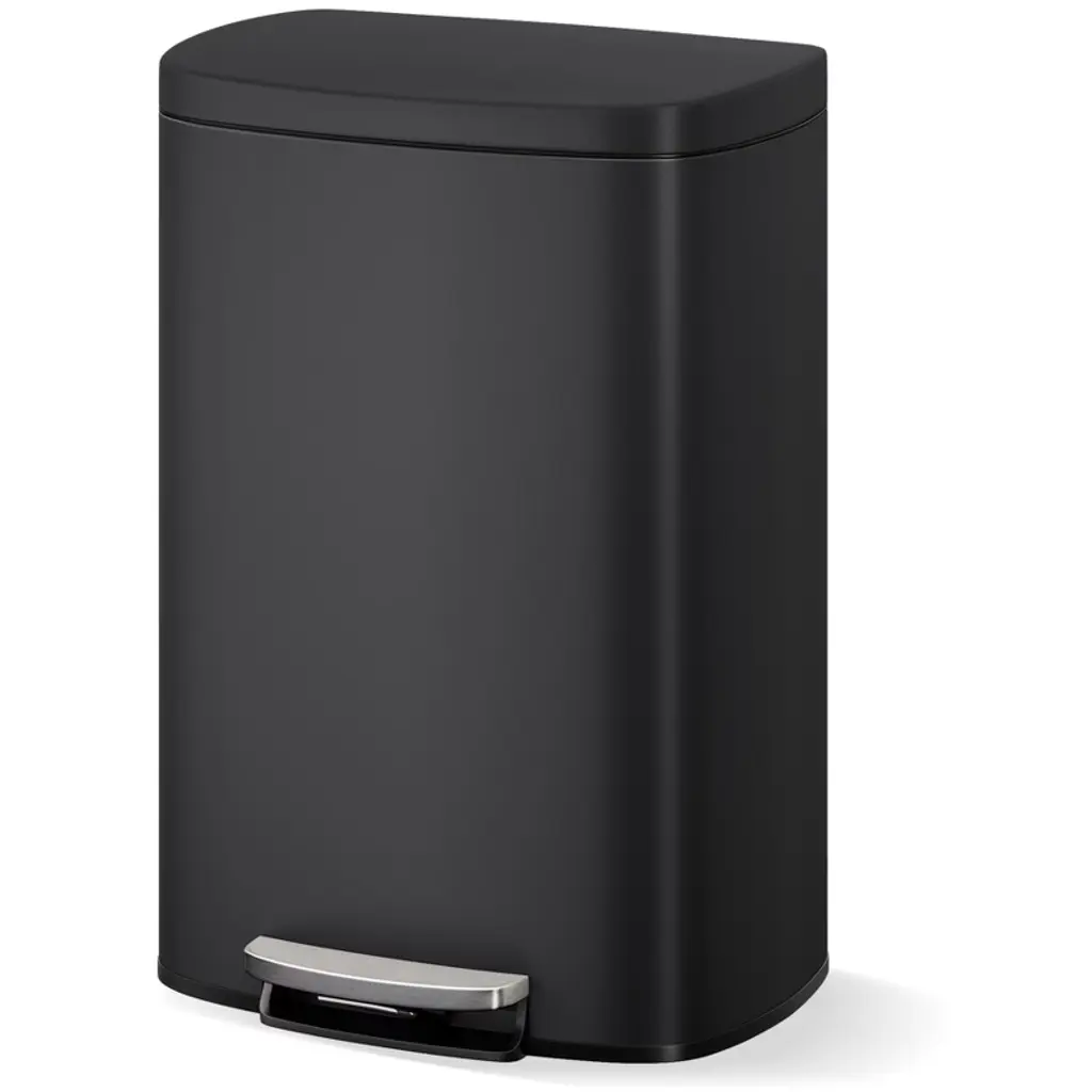 13 Gallon(50 Liter) Stainless Steel Kitchen Trash Can With Soft Close Lid, Step-on Rustproof Garbage Can For Kitchen, Rear Handle, Black