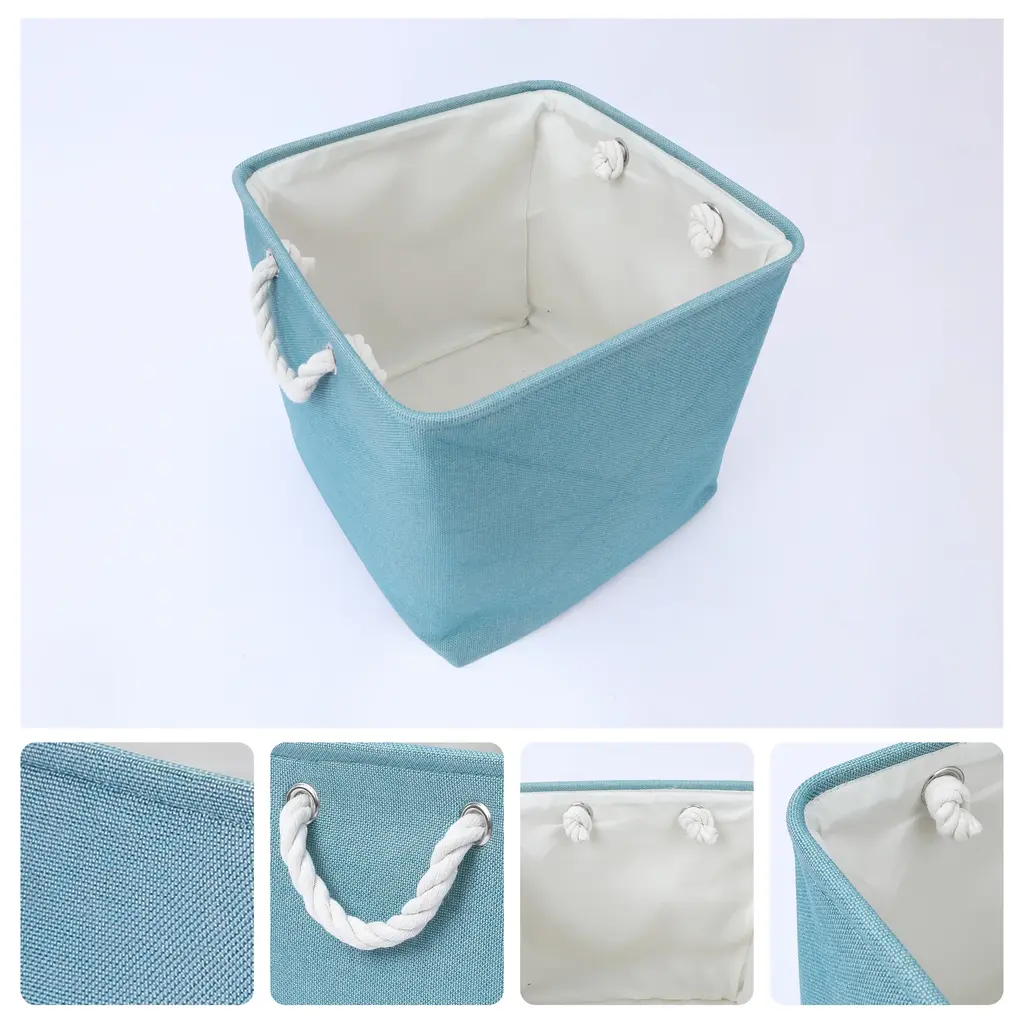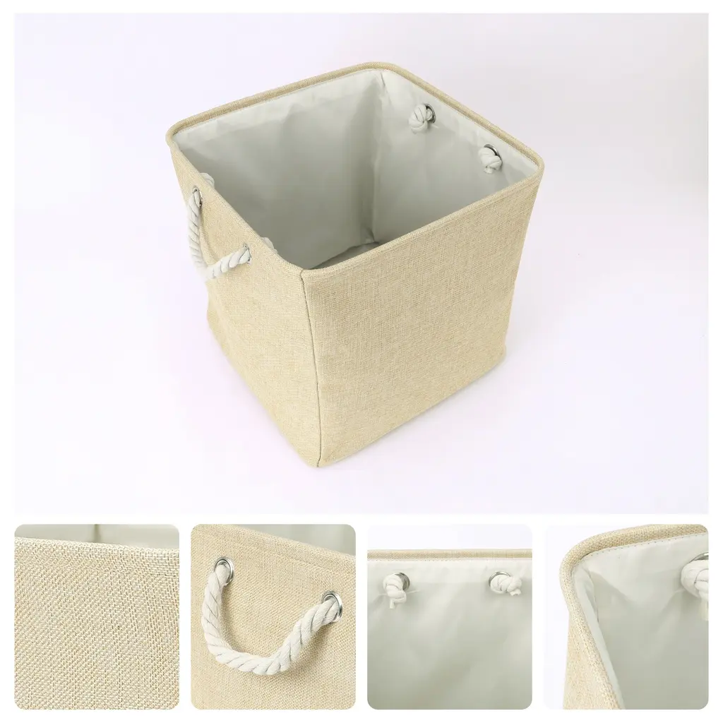 Premium Material: The cube storage organizer is made from good quality fabric and reinforced with a sturdy rope handle. The solid construction enables the shelf storage bins to stand upright without support, even when emptyCollapsible Design: The storage box can be folded flat when not in use to save space or transport. The large blanket basket for organizing various items, including clothing, towels, blankets, pet supplies, books, magazines, albums, DVDs, office and craft supplies, etcSpacious Capacity: Our organization bin enables you to store a wide variety of items to keep your home tidy and organizedEasy To Care: The large cube organizer is sturdy and has no odor and they are not machine washable. Lined with a thin linen fabric, linen closet organizer and storage is easy to clean, just wipe it with a damp sponge or clothVersatile Use Cubby Bin: Use the collapsible storage bin in the room, playroom, laundry area, closet, storage room, etc. Sit cube organizer bin on the floor, in the closet, bookcase, desk, shelving area, cubbies, and collage dorm room, classroom decor and towel organizerOur baskets provide attractive, lightweight solutions for all your storage and organization needs while keeping household items tidy and organized - Complete storage basket, closet organizers, nurseries, and more.These fabric storage bins are easy to carry or remove on a shelf. They could work well as drawers, open-top bins, or storage baskets for shelves.