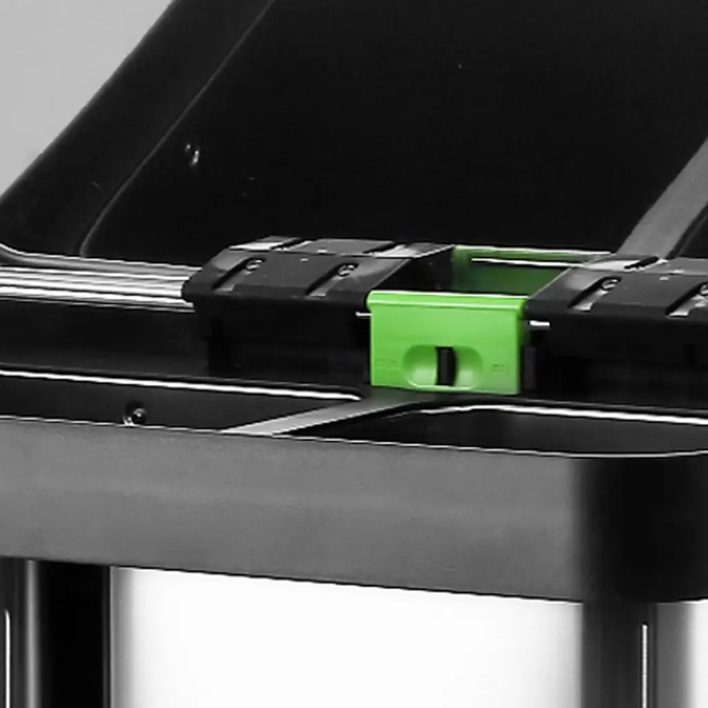 Upgrade your waste management with our 16-gallon Dual Kitchen Trash Can, featuring two compartments for easy sorting, a quiet soft-close lid, and a sleek, fingerprint-proof stainless steel design that makes cleaning effortless!Highlights at a Glance:Innovative retainer ring for easy movement of the trash bin.Large 16-gallon dual garbage can with two classified compartments for easy waste sorting.Premium stainless steel construction that is rust-resistant and easy to maintain.Quiet soft-close lid for a peaceful environment during waste disposal.Convenient hands-free pedal operation for hygienic use.Removable inner wastebasket for effortless cleaning and maintenance.Specification:Material: Stainless Steel+PP+ABSProduct Dimension: 23.2''L x 14.1''W x 24.9''HSize of Foot Pedal: 15.7''L x 1.0''WSize of Retainer Ring: 10.5''L x 10.5''WSize of Each Inner Bucket: 10.1''L x 10.1''W x 21.7''H Capacity: 15.85 Gallon/60 LPacking List:1×Trash Can2×Inner bucket1×InstructionNote:Before making a purchase, consider factors like height, width, depth and capacity to ensure the size of the trash can you are considering fits your need.To maintain appearance, regularly clean the surface of the trash can with a mild cleaner and soft cloth, avoiding the use of frosted materials to prevent scratching the stainless steel surface.