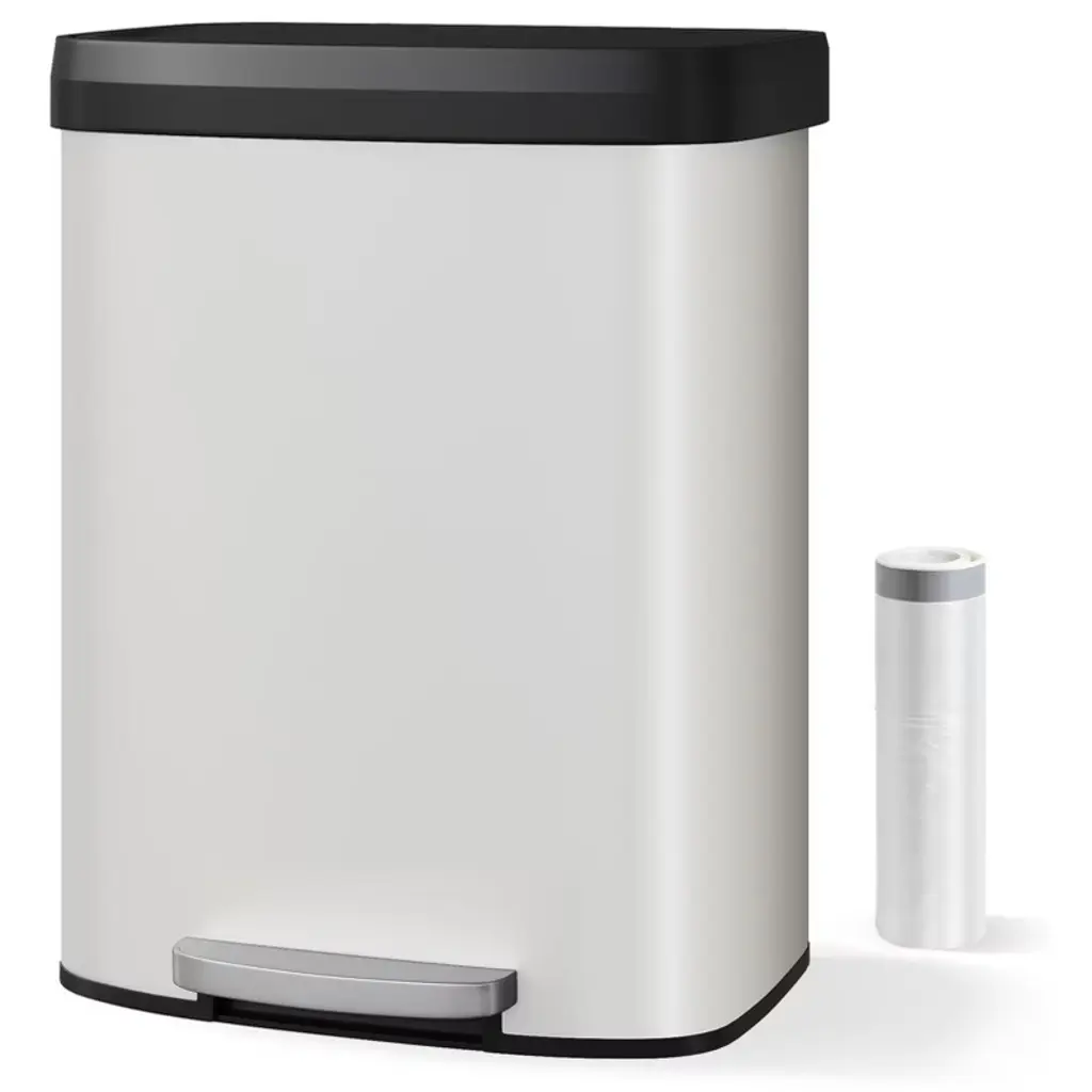 16 Gallon / 60 Liter Stainless Steel Trash Can with Lid, Large Garbage Can for Kitchen, Rustproof Step-on Kitchen Metal Trash Bin with Liner Rim, Rear Handle, Soft Close Plastic Lid