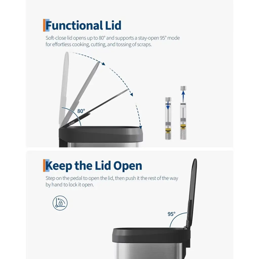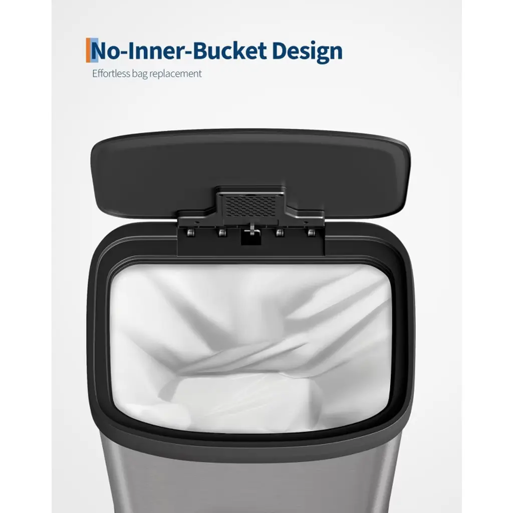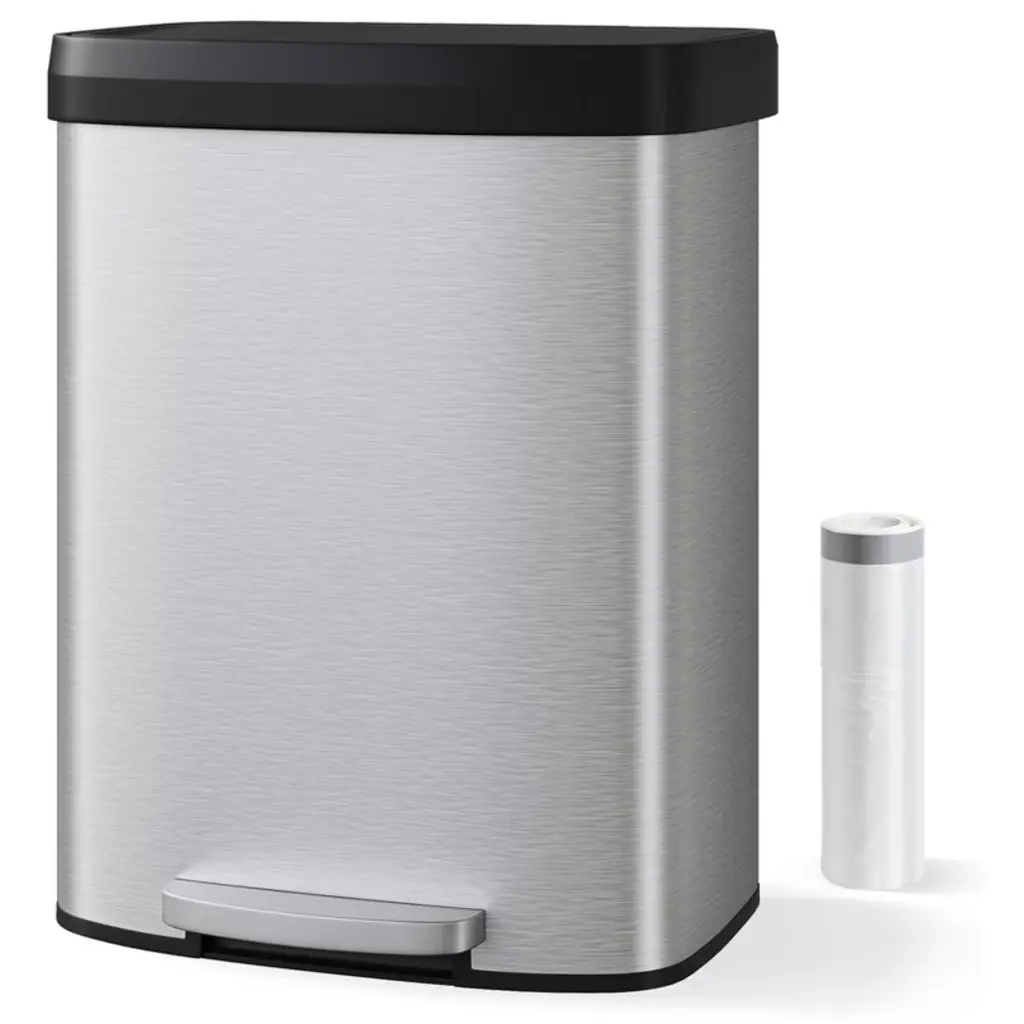 16 Gallon / 60 Liter Stainless Steel Trash Can with Lid, Large Garbage Can for Kitchen, Rustproof Step-on Kitchen Metal Trash Bin with Liner Rim, Rear Handle, Soft Close Plastic Lid, Silver