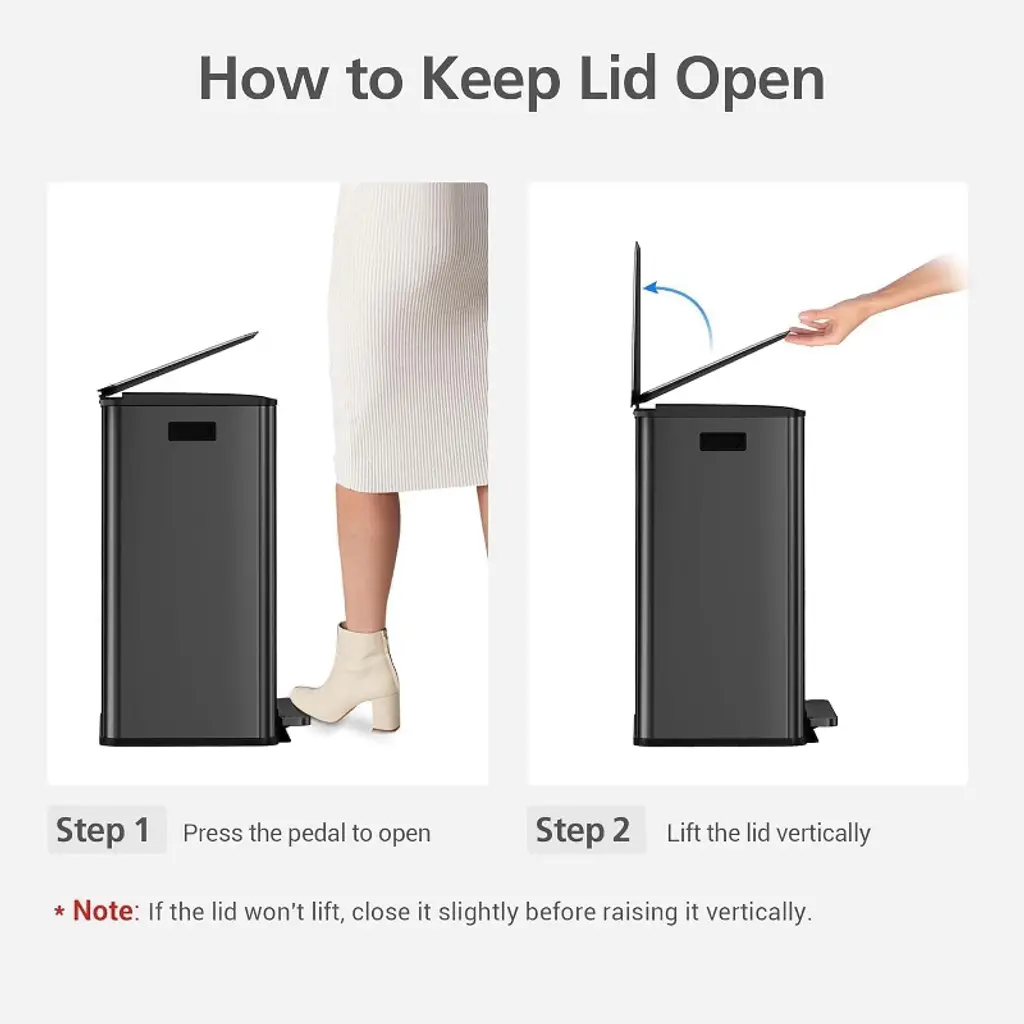 16 Gallon Kitchen Trash Can With Lid Foot Pedal And Inner Bucket,fingerprint-resistant Soft Close Lid Garbage Can Stainless Steel Dual