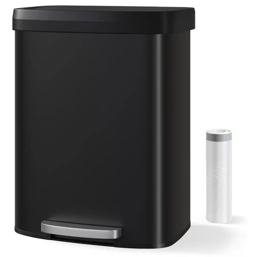 Transform waste management into a seamless, hygienic experience. This stainless steel trash can combines robust functionality with sleek aesthetics, handling everything from kitchen food prep mess to bathroom hygiene needs while discreetly elevating your space.• Generous 60L CapacityIdeal for family gatherings and weekend cleanouts, its 15.85-gallon volume holds multiple days' worth of kitchen packaging or bathroom waste without overflowing.• Rugged Stainless SteelHigh-grade rust-resistant metal withstands humid bathrooms and messy cooking areas. Smudge-proof surface wipes clean in seconds, maintaining a polished look for years.• Odor-Controlling SealThe soft-close lid creates an airtight barrier to lock in food or pet odors. Integrated deodorizer neutralizes unpleasant smells, keeping sensitive spaces fresh.• Hands-Free Foot PedalNo-touch operation via reinforced pedal prevents cross-contamination when disposing of raw food scraps or personal care products—ideal for health-conscious households.• Versatile Modern DesignBrushed stainless finish complements stainless appliances in kitchens, blends with vanity sets in bathrooms, and adds minimalist style to office corners.Upgrade your routine with a trash can that prioritizes cleanliness and style. Discover how smart design makes everyday disposal simpler and more efficient.
