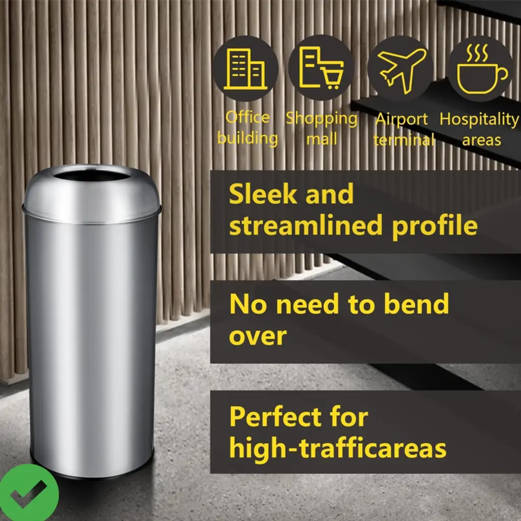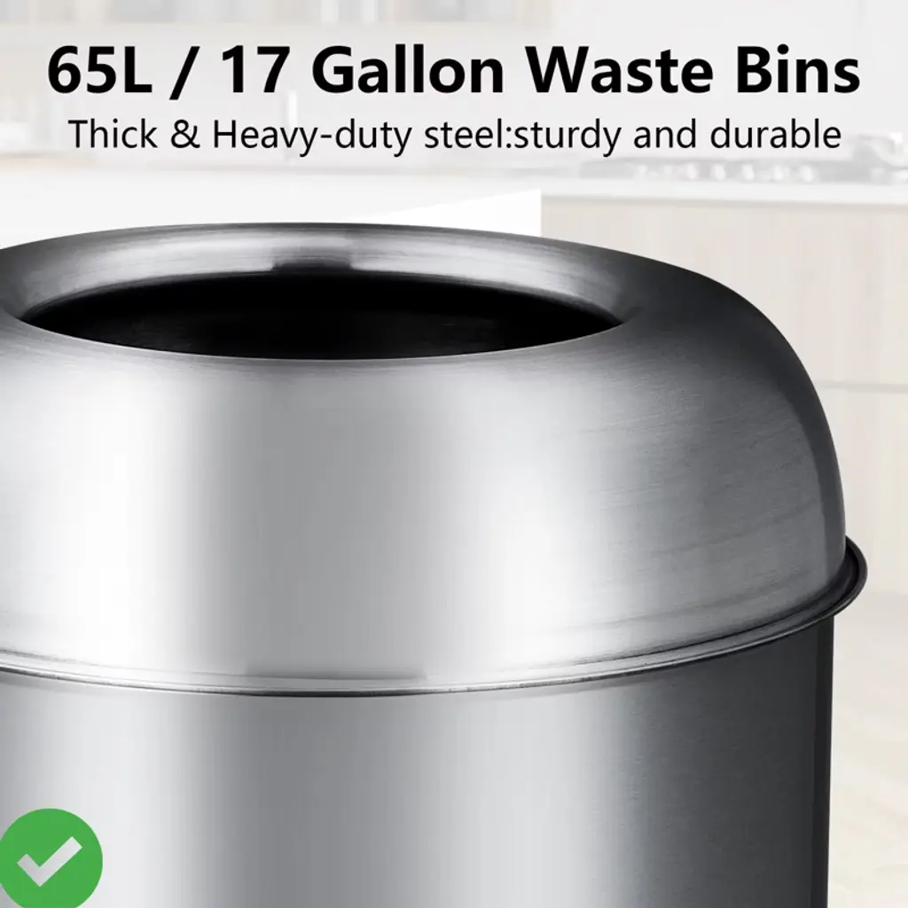 LARGE CAPACITY & HEAVY DUTY: 65 liters/17 gallons, this trash can is suitable for both domestic and commercial environments and meets different disposal requirements.It is constructed from sturdy rolled steel to withstand changes in time and temperature for unwavering strength.