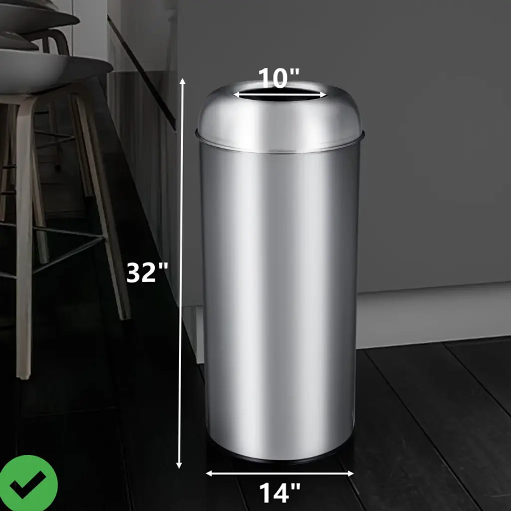 17 Gal / 65l Open Top Trash Can Commercial Grade Heavy Duty Tall Commercial Trash Can Brushed Stainless Steel