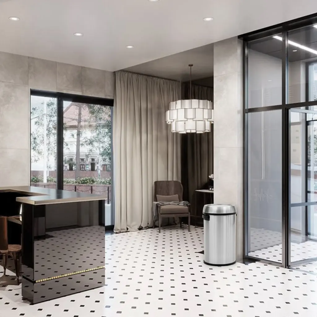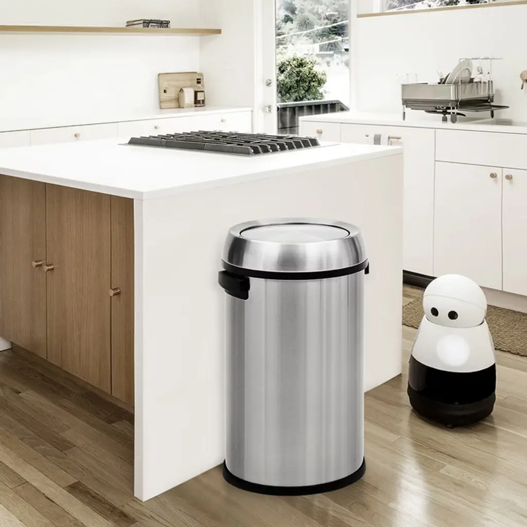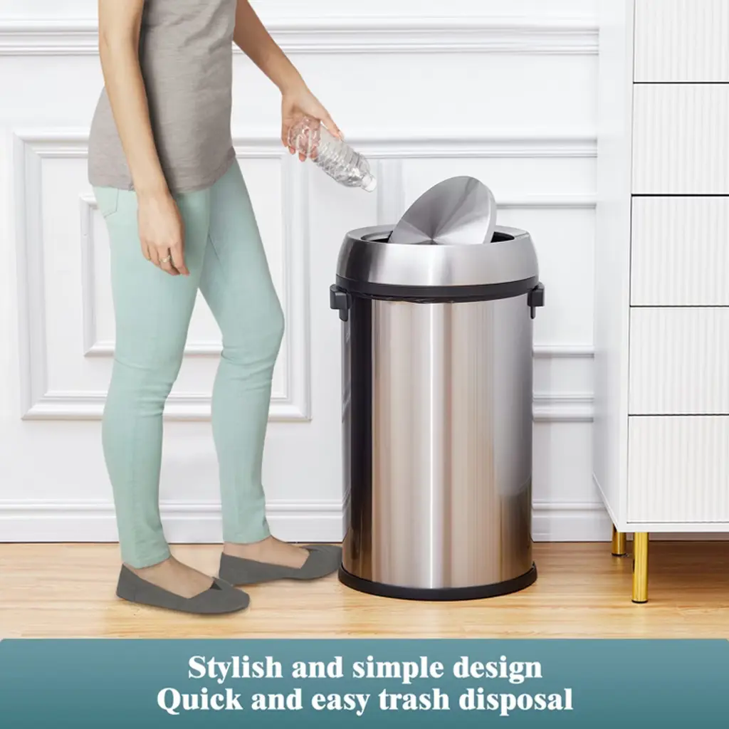Upgrade your waste management with the 65 Liter/17 Gallon Swing Top Trash Can, the perfect solution for kitchens, outdoor spaces, homes, and offices. Crafted from fingerprint-proof stainless steel, this heavy-duty commercial round trash bin offers durability and a sleek, modern look that resists smudges and fingerprints, keeping it looking pristine with minimal effort. The swing lid design provides easy, hands-free operation, making disposal quick and hygienic, while effectively containing odors and preventing pests. Its spacious 65-liter capacity ensures fewer trips to empty, ideal for high-traffic areas or busy households. This open-top trash can is versatile, suitable for use as a rubbish bin, garbage and recycling can, or a commercial waste container, making it an essential addition to any space. Its sturdy construction and commercial-grade quality ensure long-lasting performance, even in demanding environments. Whether you need a reliable outdoor trash bin, a stylish kitchen companion, or a durable office waste container, the Swing Top Trash Can combines functionality with sleek design to meet all your waste disposal needs. Easy to clean and maintain, this stainless steel garbage can is the ultimate choice for those seeking a professional-grade, fingerprint-proof, and user-friendly trash solution.
