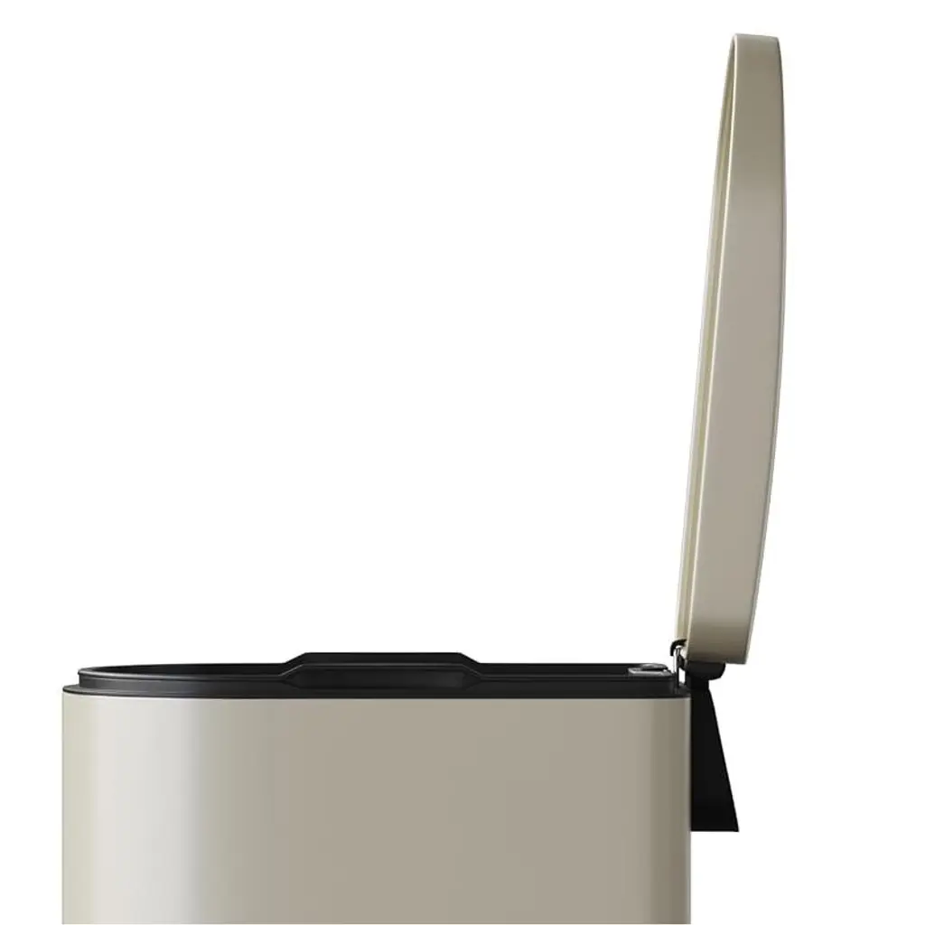 2.6 Gallon / 10 Liter Step-on Stainless Steel Trash Can With Soft-close Lid, Slim Garbage Bin With Inner Bucket For Bathroom Or Bedroom, Beige
