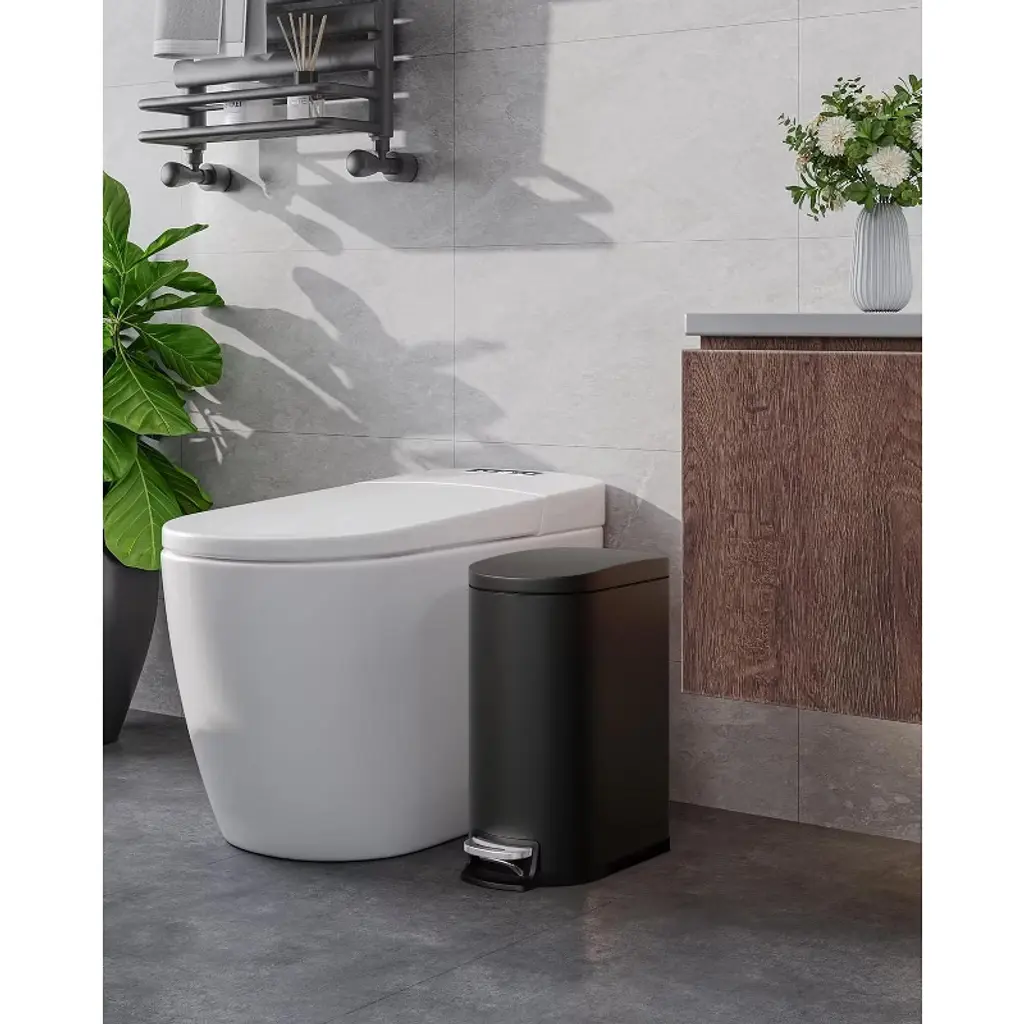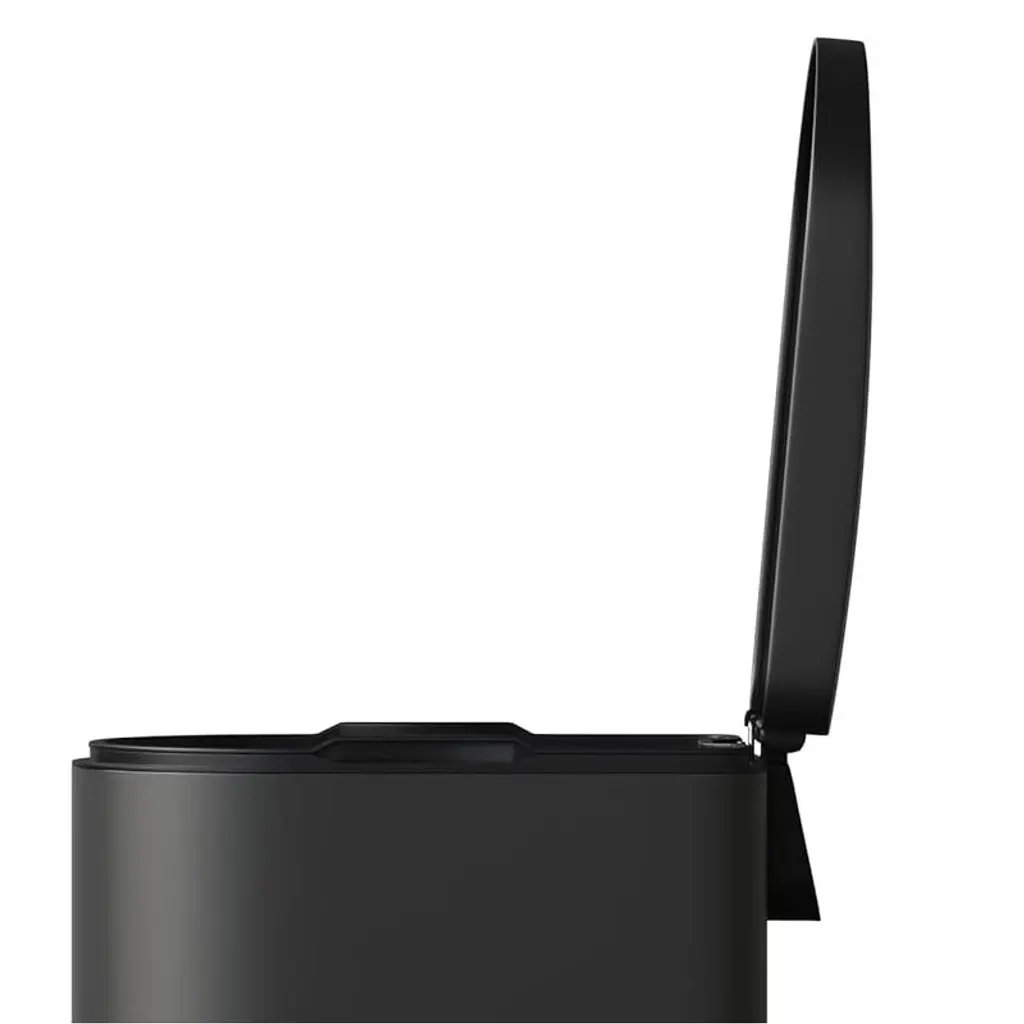 2.6 Gallon / 10 Liter Step-on Stainless Steel Trash Can With Soft-close Lid, Slim Garbage Bin With Inner Bucket For Bathroom Or Bedroom, Black