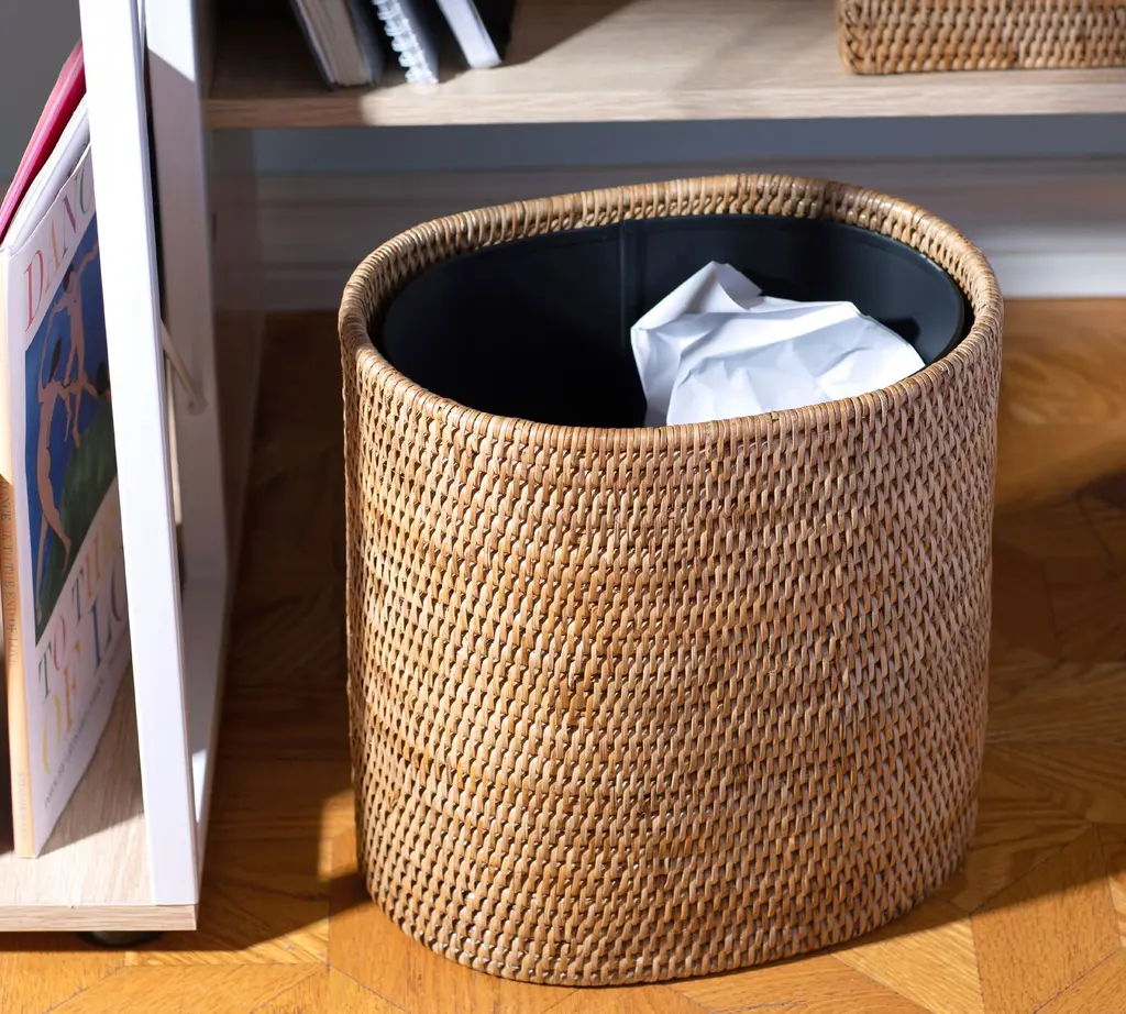 2.6 Gallon Small Garbage Trash Can With Rattan Basket - Brown