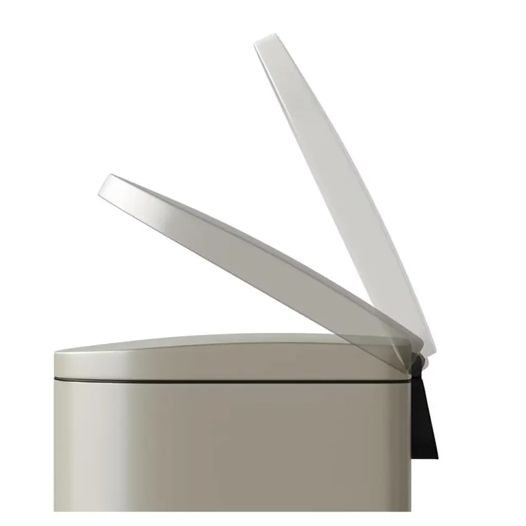 [SLEEK AESTHETIC, COMPACT FOOTPRINT] – The 2.6 gallon bathroom trash can presents a sleek silhouette at 12.6 in L × 7.32 in W × 15.28 in H when closed, rising to 25.59 in H on lid opening—effortlessly fitting into narrow bathroom gaps. The removable inner bucket (9.84 in L × 6.58 in W × 13.98 in H) holds up to 6×16.9 oz bottles or 15×12 oz cans, maximizing volume without sacrificing floor space. [MINIMAL FORM, EXQUISITE DETAIL] – The powder coated metal garbage can for bathroom features a fingerprint-resistant finish that wipes spotless with a soft cloth. A thick lid with extended overhang lip hides bag rims for a flawless profile, while anti-slip rubber feet anchor the bin securely on bathroom or bedroom floors. Inner-bucket lips enable touch-free removal and replacement of liners, ensuring clean bag changes every time. [HIGH-QUALITY MATERIALS] – The small trash can with lid is built to endure. Its powder coated metal shell delivers rustproof, waterproof strength and lasting luster, while the polypropylene inner bucket repels stains, odors. A durable ABS lid with powder coated overlay resists dents; the industrial-steel pedal withstands 150,000+ steps; and the heavy-duty ABS hinge survives over 300,000 open/close cycles. [PRACTICAL DESIGN] – Our slim step-on bathroom trash can prioritizes ergonomic ease. Its rear handle enables effortless lifting and relocation. The soft-close lid glides open to 80° and locks at 95° for hands-free stay-open mode. The inner bucket with lid traps odors, and a custom liner ring secures any standard bag snugly to prevent slips, bunching, or overhang. [VERSATILE APPLICATIONS] – The trash bin adapts to every corner of your home: perfect for the gap between toilet and sink or beside the tub; slides into tight spaces between cabinets, walls, or appliances; and elevates your home coffee corner with polished, clutter-free functionality.