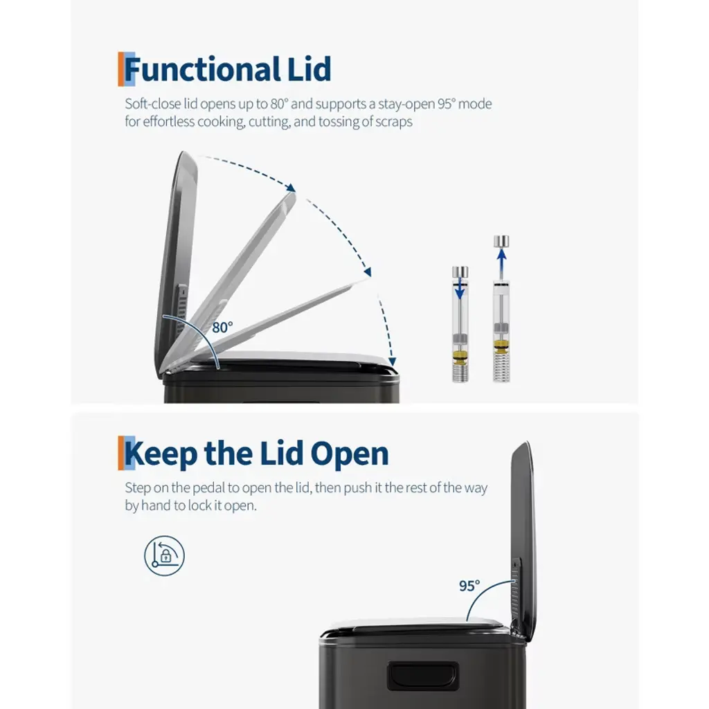 2 x 8 Gallon Stainless Steel Double Trash Can with Lid for Kitchen, Large Dual Trash and Recycle Bin Combo, Step-on Kitchen Metal Garbage Cans, PP Inner Buckets, Liner Rim