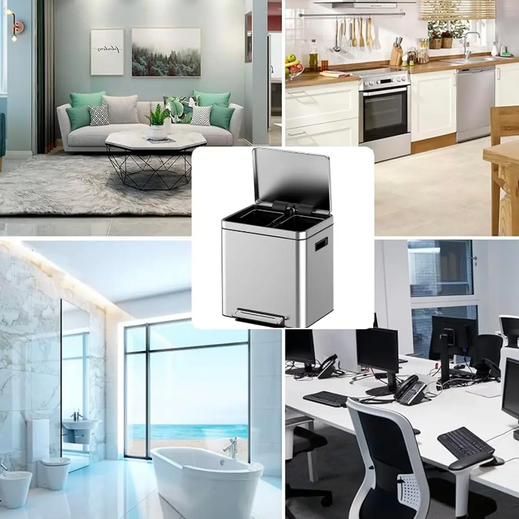 2X4 Gal (2 X 15l) Trash Can, Stainless Steel Dual Compartment Step-on Recycling Bin With Soft-close Lids & Removable Plastic Inner Buckets