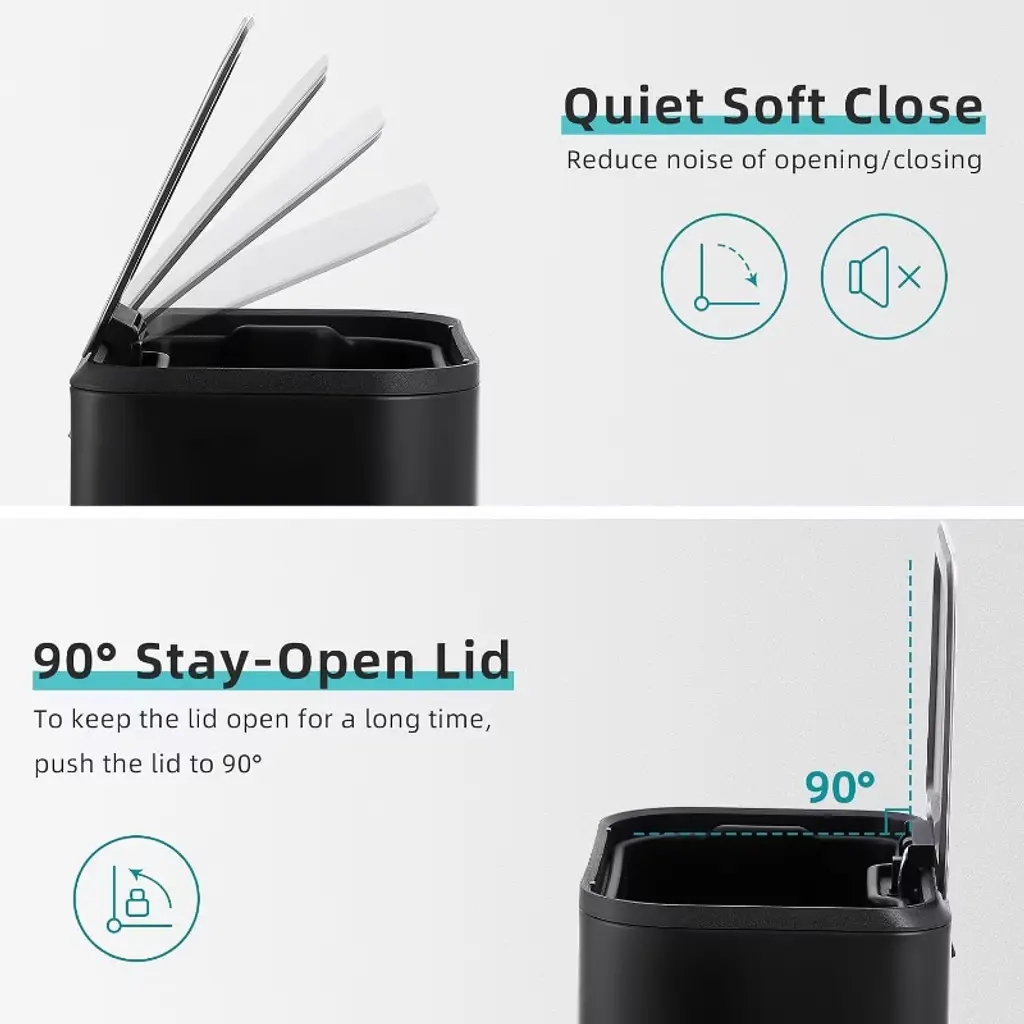 3.2 Gallon Bathroom Trash Can, Stainless Steel Garbage Can With Lid, Rectangular Small Step Waste Bin With Removable Inner Bucket, Black