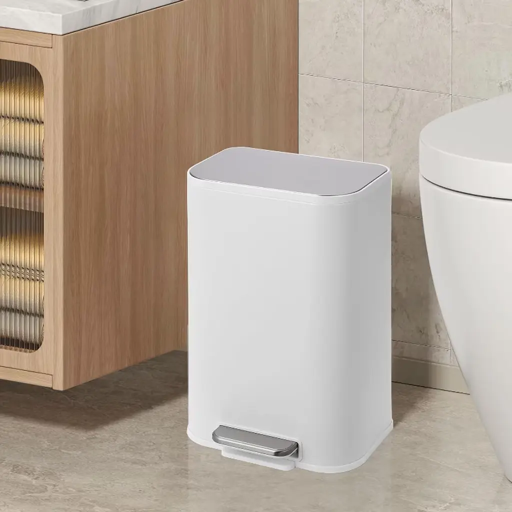 3.2 Gallon Bathroom Trash Can, Stainless Steel Garbage Can With Lid, Rectangular Small Step Waste Bin With Removable Inner Bucket, White