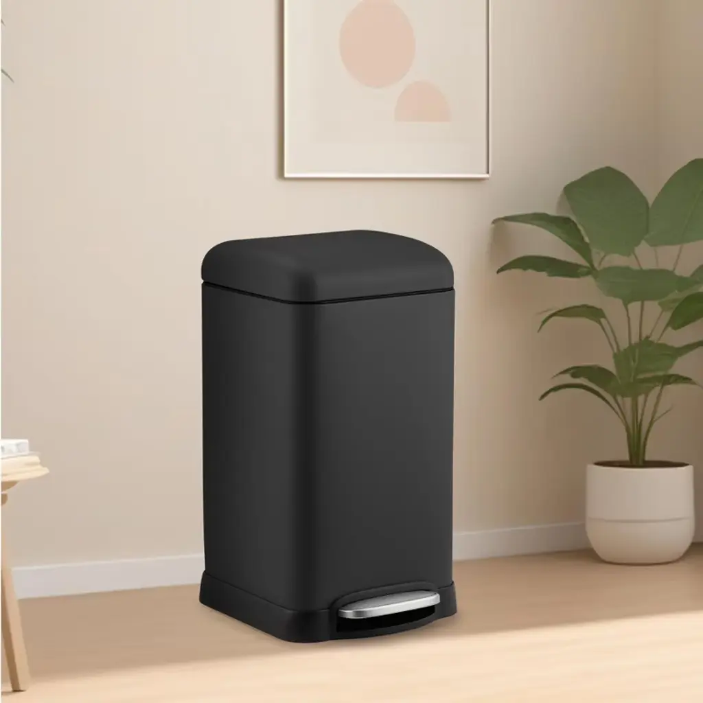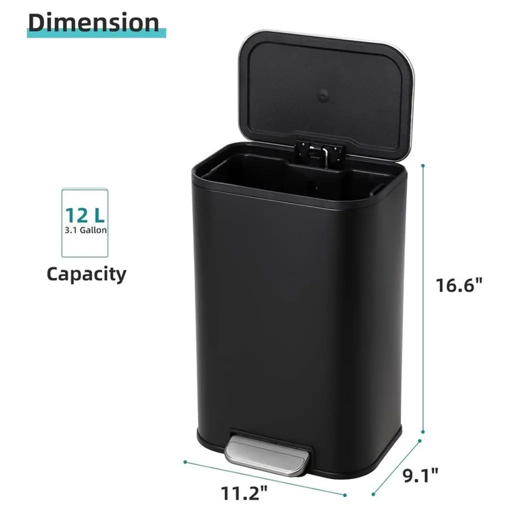 3.2 Gallon Kitchen Trash Can With Lid,stainless Steel Garbage Can With Foot Pedal & Removable Inner Bucket For Office Bedroom Living Room(black, 12l)