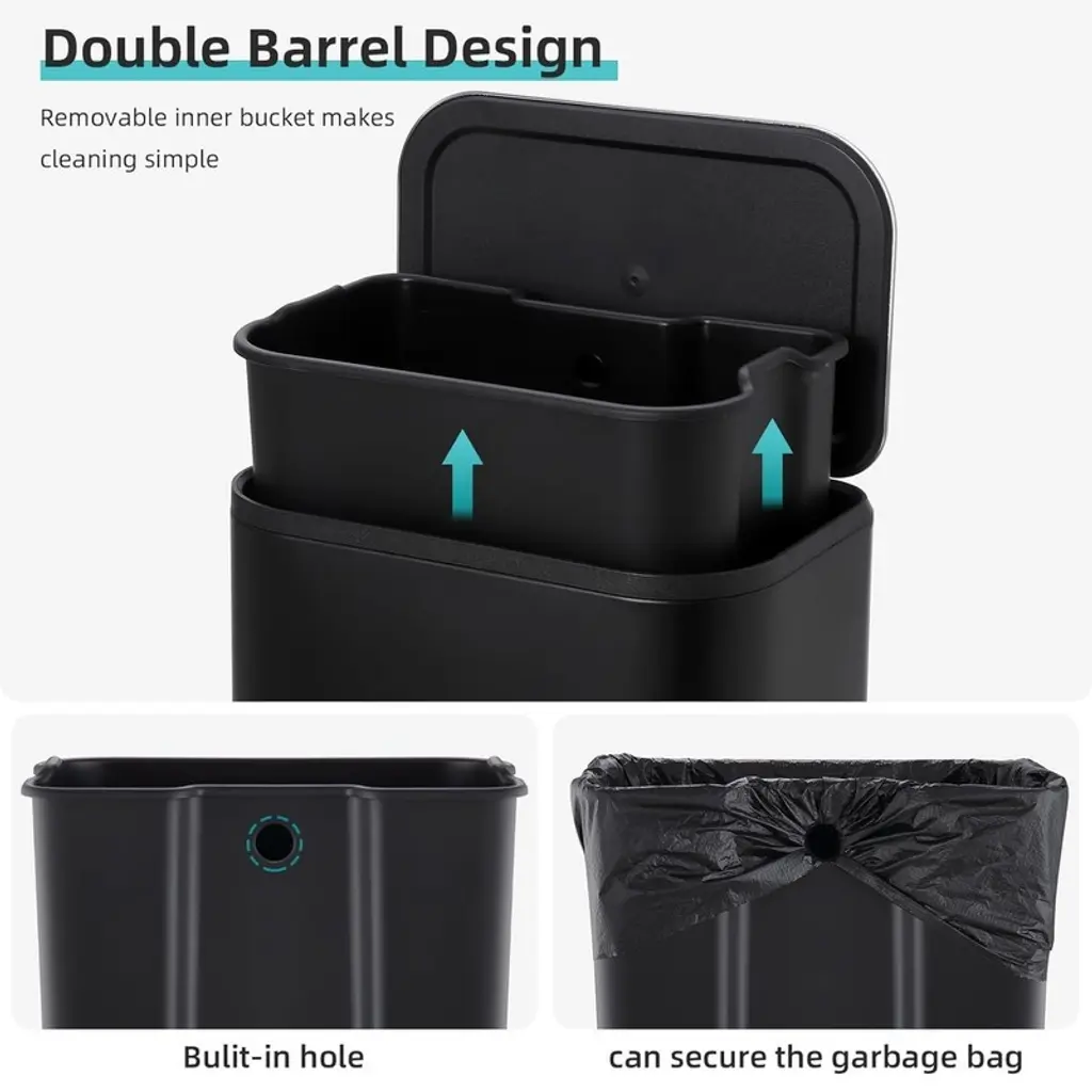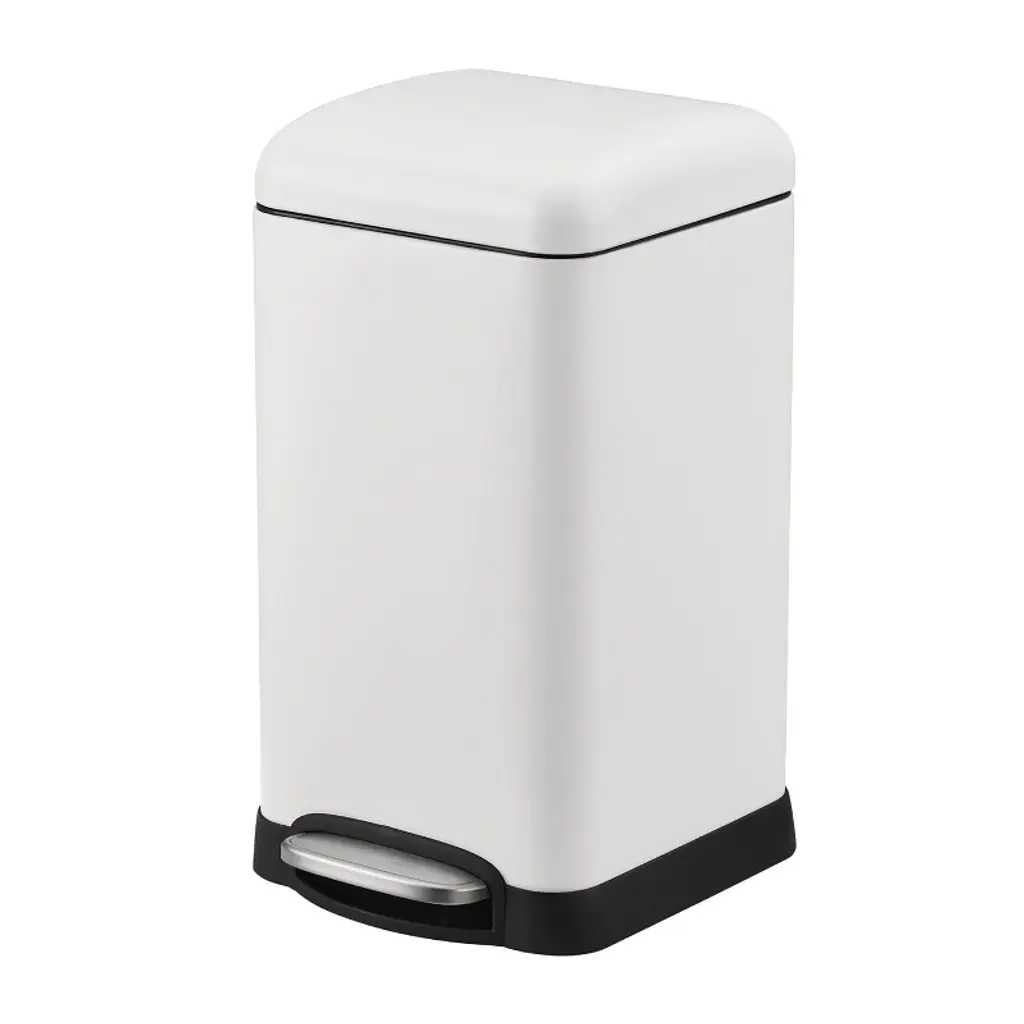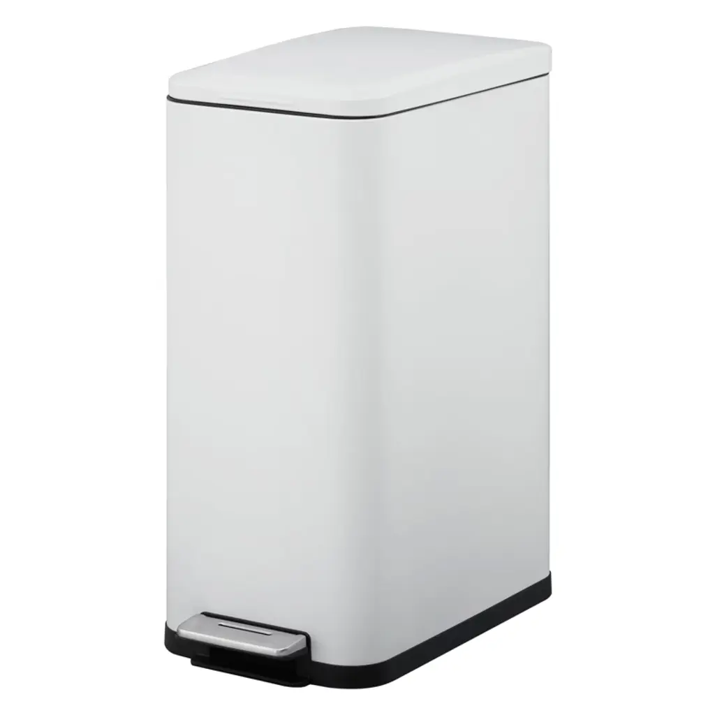 Matte White Finish: Crafted from robust stainless steel, featuring a stainless steel lid and foot pedal and a matte white powder-coated body, this trash can boasts a fingerprint-resistant and scratch-proof exterior that is effortless to clean and maintain Silent Close Lid: Designed for a slow, gentle closure, the trash can lid avoids slamming shut, ensuring a quiet and elegant experience every time Convenient Foot Pedal: Our user-friendly foot pedal design eliminates the need for bending or touching the trash can. The foot pedal is located at the bottom, and you can easily open the lid with a light step Removable Inner Bucket: Equipped with a plastic inner bucket, this trash can facilitates easy waste disposal and garbage bag replacement. The top hole securely holds the trash bag in place, enhancing convenience and functionality