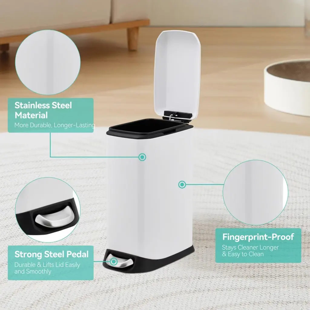 Are you tired of overflowing bins or bulky trash cans that never quite fit in your space? Picture a 3.2 gallon slim trash can that handles all your daily waste for one to two days—no more running out to empty it constantly. Engineered in sleek stainless steel, it resists stains and rust while adding a modern touch to your kitchen, bathroom, or office. The soft close lid keeps your routine quiet and odor-free, and the removable inner bucket makes cleanup effortless. Wouldn't you love a rubbish bin that blends style, convenience, and the perfect fit for every corner of your home?