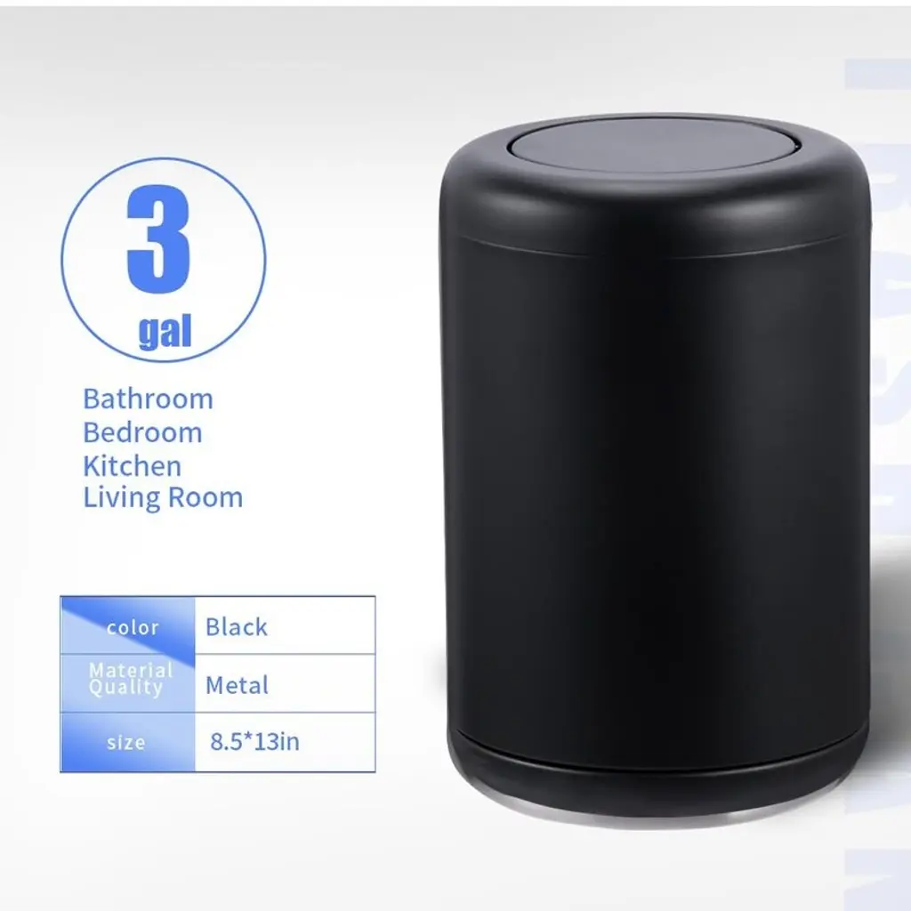 3-Gallon Trash Can With Swivel Lid Metal Cylindrical Bathroom Trash Can - 8.5 X 8.5 X 13 Inches - Black