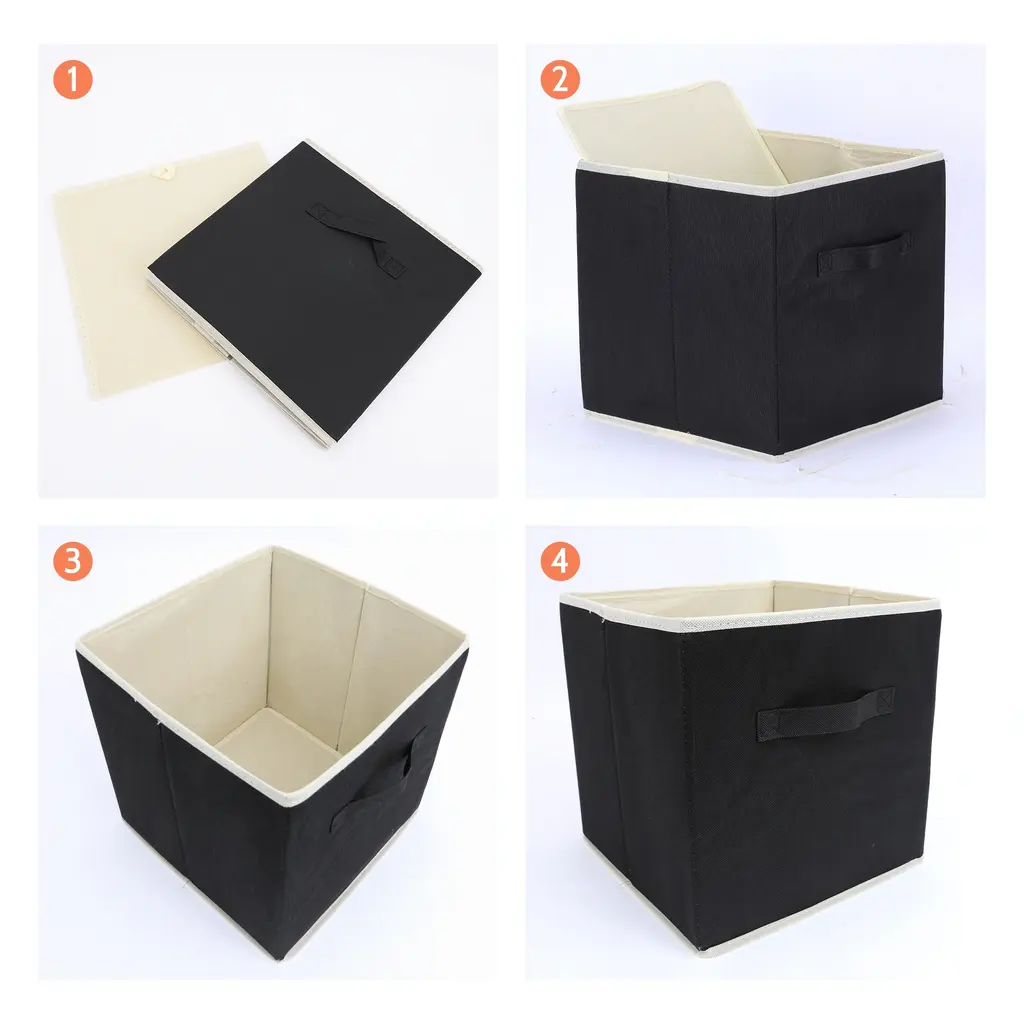 Premium Material: The cube storage organizer is made from good quality fabric and reinforced with a sturdy rope handle. The solid construction enables the shelf storage bins to stand upright without support, even when emptyCollapsible Design: The storage box can be folded flat when not in use to save space or transport. The large blanket basket for organizing various items, including clothing, towels, blankets, pet supplies, books, magazines, albums, DVDs, office and craft supplies, etcSpacious Capacity: Our organization bin enables you to store a wide variety of items to keep your home tidy and organizedEasy To Care: The large cube organizer is sturdy and has no odor and they are not machine washable. Lined with a thin linen fabric, linen closet organizer and storage is easy to clean, just wipe it with a damp sponge or clothVersatile Use Cubby Bin: Use the collapsible storage bin in the room, playroom, laundry area, closet, storage room, etc. Sit cube organizer bin on the floor, in the closet, bookcase, desk, shelving area, cubbies, and collage dorm room, classroom decor and towel organizerOur baskets provide attractive, lightweight solutions for all your storage and organization needs while keeping household items tidy and organized - Complete storage basket, closet organizers, nurseries, and more.These fabric storage bins are easy to carry or remove on a shelf. They could work well as drawers, open-top bins, or storage baskets for shelves.