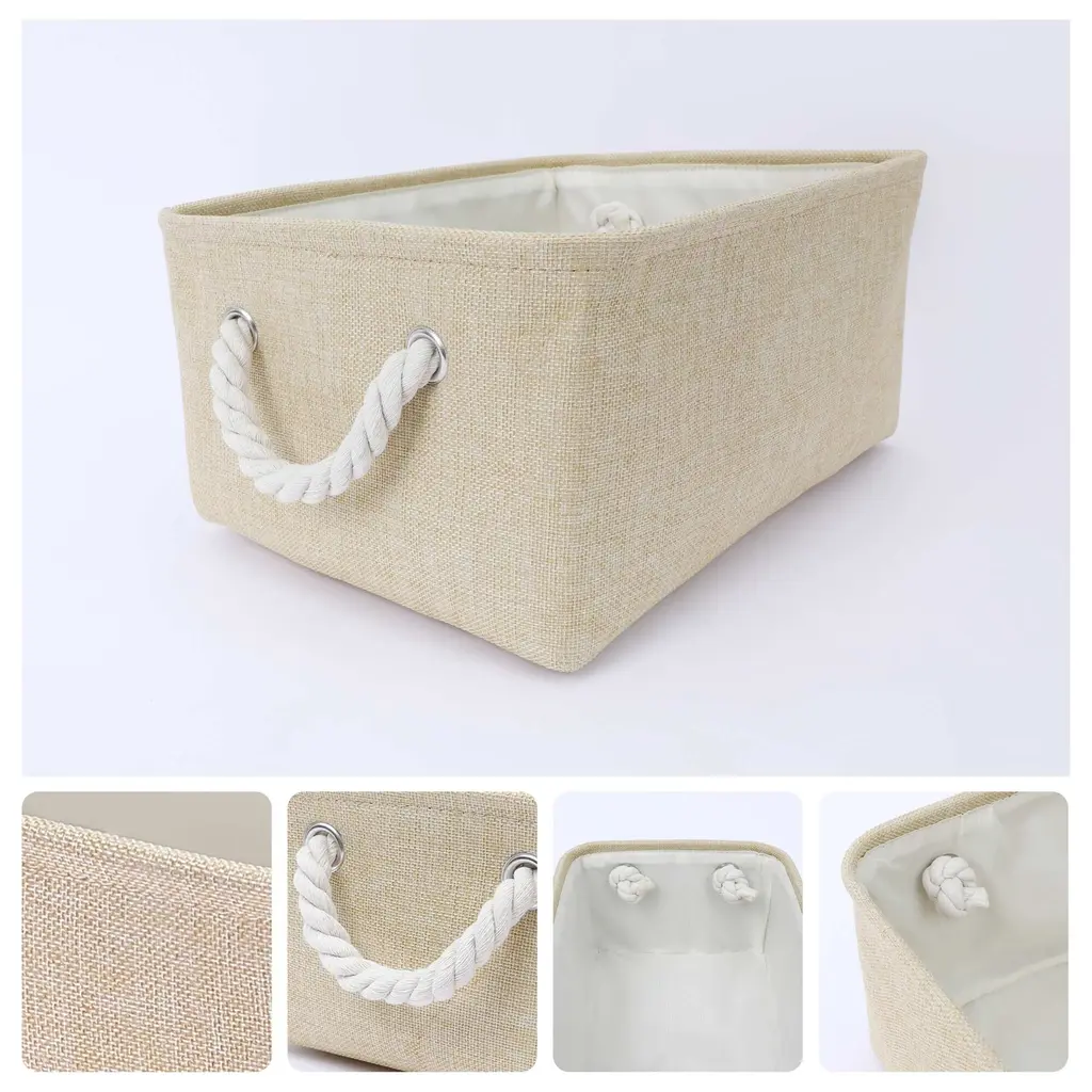 Premium Material: The cube storage organizer is made from good quality fabric and reinforced with a sturdy rope handle. The solid construction enables the shelf storage bins to stand upright without support, even when emptyCollapsible Design: The storage box can be folded flat when not in use to save space or transport. The large blanket basket for organizing various items, including clothing, towels, blankets, pet supplies, books, magazines, albums, DVDs, office and craft supplies, etcSpacious Capacity: Our organization bin enables you to store a wide variety of items to keep your home tidy and organizedEasy To Care: The large cube organizer is sturdy and has no odor and they are not machine washable. Lined with a thin linen fabric, linen closet organizer and storage is easy to clean, just wipe it with a damp sponge or clothVersatile Use Cubby Bin: Use the collapsible storage bin in the room, playroom, laundry area, closet, storage room, etc. Sit cube organizer bin on the floor, in the closet, bookcase, desk, shelving area, cubbies, and collage dorm room, classroom decor and towel organizerOur baskets provide attractive, lightweight solutions for all your storage and organization needs while keeping household items tidy and organized - Complete storage basket, closet organizers, nurseries, and more.These fabric storage bins are easy to carry or remove on a shelf. They could work well as drawers, open-top bins, or storage baskets for shelves.