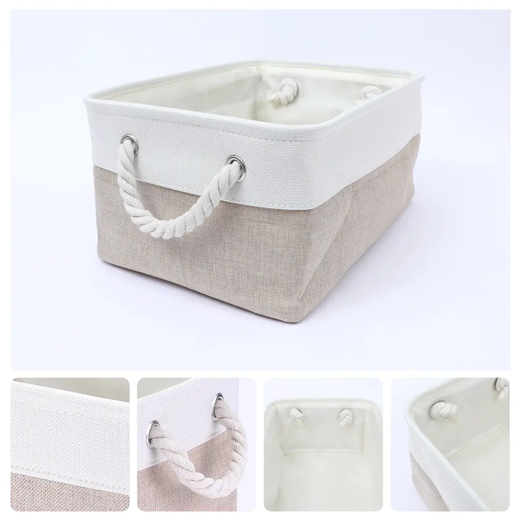 Premium Material: The cube storage organizer is made from good quality fabric and reinforced with a sturdy rope handle. The solid construction enables the shelf storage bins to stand upright without support, even when emptyCollapsible Design: The storage box can be folded flat when not in use to save space or transport. The large blanket basket for organizing various items, including clothing, towels, blankets, pet supplies, books, magazines, albums, DVDs, office and craft supplies, etcSpacious Capacity: Our organization bin enables you to store a wide variety of items to keep your home tidy and organizedEasy To Care: The large cube organizer is sturdy and has no odor and they are not machine washable. Lined with a thin linen fabric, linen closet organizer and storage is easy to clean, just wipe it with a damp sponge or clothVersatile Use Cubby Bin: Use the collapsible storage bin in the room, playroom, laundry area, closet, storage room, etc. Sit cube organizer bin on the floor, in the closet, bookcase, desk, shelving area, cubbies, and collage dorm room, classroom decor and towel organizerOur baskets provide attractive, lightweight solutions for all your storage and organization needs while keeping household items tidy and organized - Complete storage basket, closet organizers, nurseries, and more.These fabric storage bins are easy to carry or remove on a shelf. They could work well as drawers, open-top bins, or storage baskets for shelves.