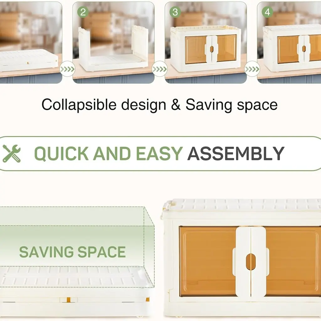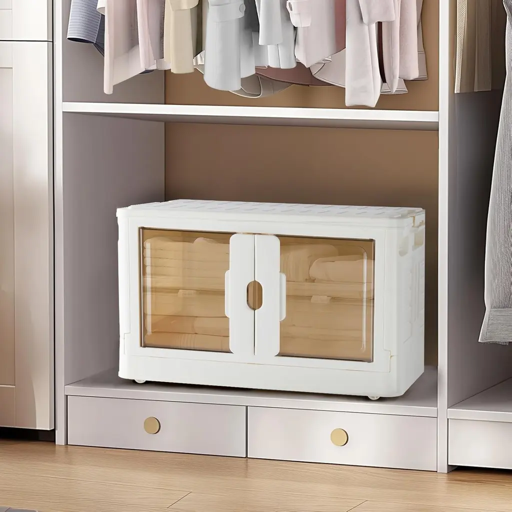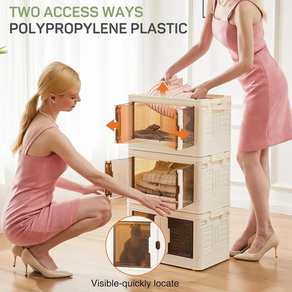 Product Details:These 3-tier stackable plastic storage bins with lids are a versatile and convenient solution for organizing your living space. With a total capacity of 23 quarts, these bins are perfect for storing a variety of items such as clothing, shoes, toys, crafts, and more. The foldable design of these bins allows for easy storage when not in use, while the magnetic doors provide quick access to your belongings. The lockable wheels make it easy to move these bins around your home, whether you're reorganizing your space or simply need to access items stored inside. These portable collapsible closet organizer boxes are ideal for use in the living room, bedroom, dorm, or home office. Keep your space tidy and organized with these stackable storage bins that offer both functionality and style.【Large capacity】: Each storage box measures 15.4 x 11 x 8.5 inches (23QT capacity) and can support up to 90 pounds. It is made of durable PP material and can extend its lifespan. Provide 3 layers to meet different storage requirements.【Stackable and movable】: It has a buckle ring that can fix two layers at the same time, with deep grooves on each layer for stable stacking, and four smooth rollers that will not damage the floor. Lockable wheels provide customizable fixed positioning.[Transparent magnetic door]: The front door is equipped with a magnetic lock buckle that can be safely closed to ensure that items remain in place. The semi transparent panel facilitates viewing of stored items, while the detachable top cover facilitates access to larger items.【Versatile features】: The folding storage box is aesthetically pleasing and practical, suitable for various occasions. Used to store clothes or serve as a bedside table in the bedroom, a blanket or coffee table in the living room, snacks and utensils in the kitchen, or books in the office.【Multi functional application】: This foldable storage box has various functions and can adapt to countless storage needs in different environments. These boxes are designed for both indoor and outdoor use, ensuring that your items are systematically arranged, protected, and readily accessible.
