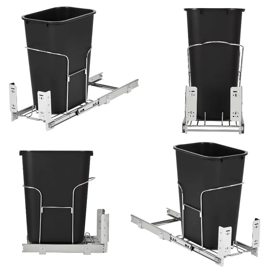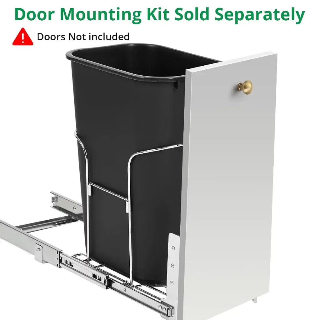 Enjoy effortless cleaning with this 35 quart under cabinet pull out trash and recycling bin featuring a thickened bracket supporting up to 100 pounds for durable, hygienic use. The compact design saves kitchen space by hiding bins while keeping them accessible. Dual bins promote eco-friendly waste separation, preventing messes and supporting sustainability. Modern soft close slides and sleek black stainless steel finish enhance style and function. Flexible installation with removable handle allows door mounting or traditional pullout use. Dimensions: Capacity: 35 quarts total dual bin system Bracket supports up to 100 pounds Fits standard cabinet openings with adjustable mounting Soft close full extension ball bearing slides for smooth access Removable handle included for versatile installation What You Get: One 35 quart dual bin pull out trash and recycling organizer Rustproof black stainless steel bracket and frame Soft close full extension slides with ball bearing system Removable handle and door mounting kit for flexible installation All necessary hardware and clear instructions included After-Sales Service: We provide detailed assembly instructions and all hardware for easy installation. Our responsive customer support team is ready to assist with any questions or concerns to ensure your satisfaction and smooth setup experience.