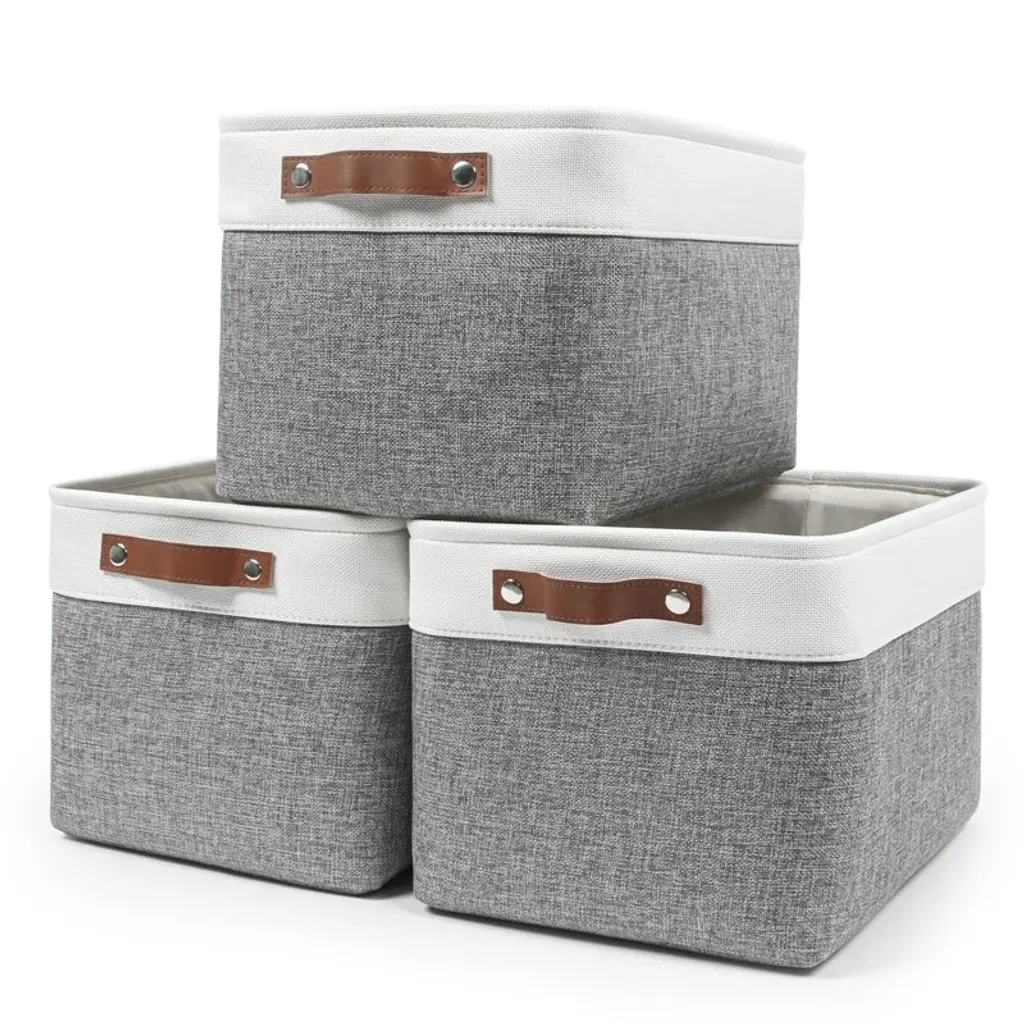 3Pc Collapsible Fabric Storage Bin Cloth Baskets - Homluxtm: 15"x11"x9.5" With Handles