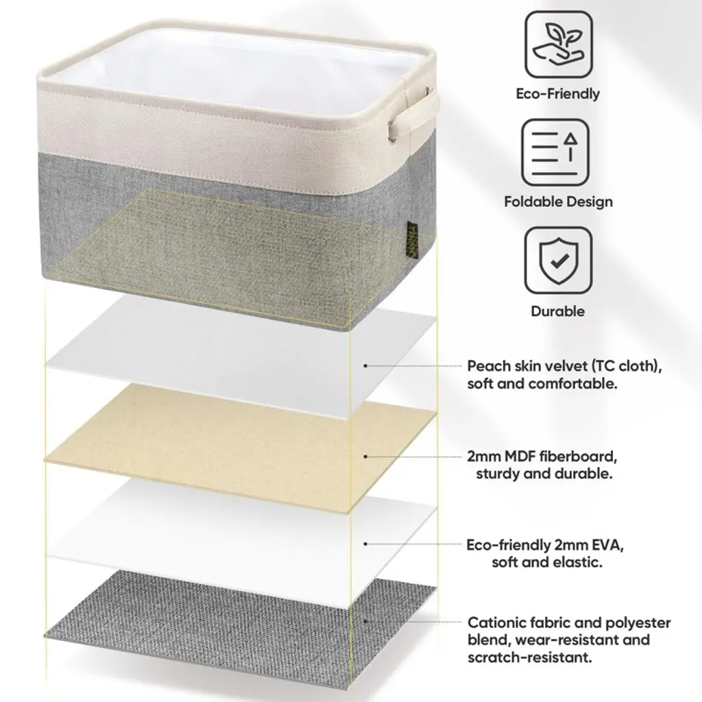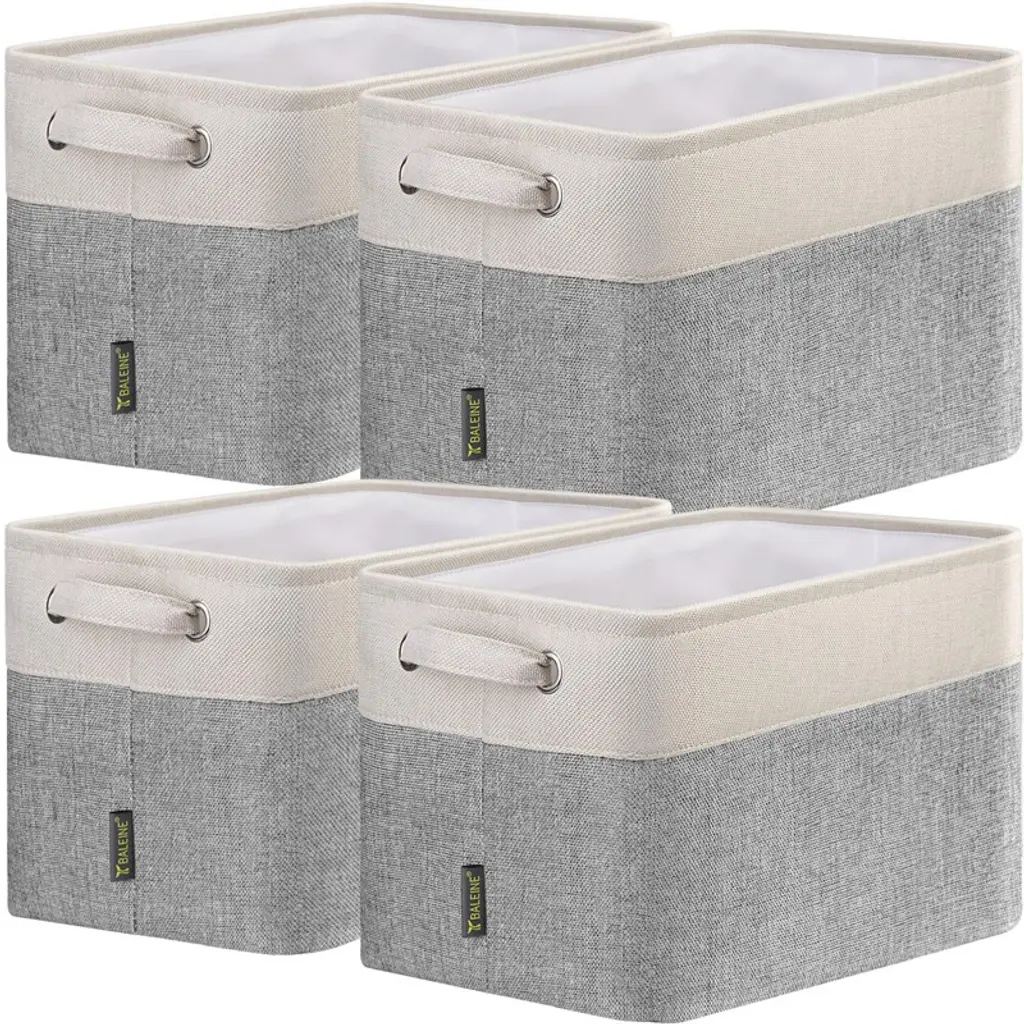 HOMLUX 4pc/3pc Collapsible Fabric Storage Bins, 15"x11"x9.5". Durable linen, sleek design, easy-carry handles. Ideal for clothes, toys, books—perfect for shelves, closets, under-bed storage. Foldable for compact storage.